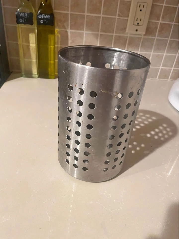 Metal utensil holder. Great for anyone with not a lot of cabinet space
