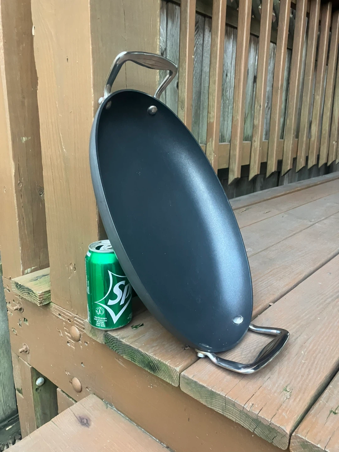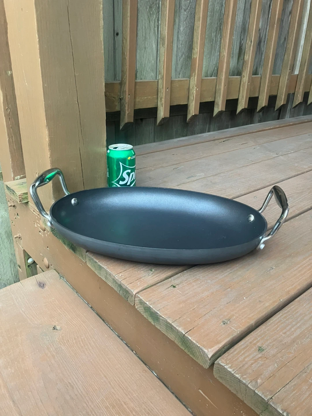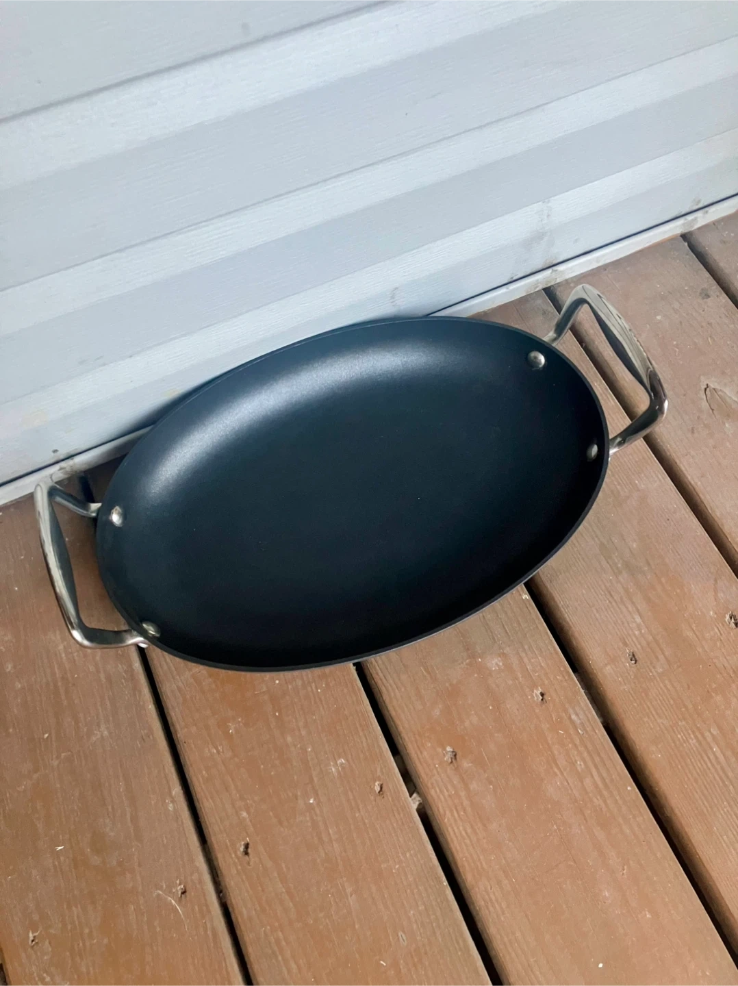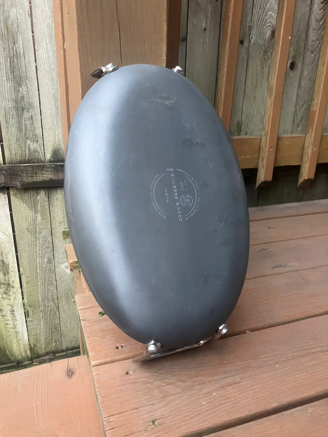 Cooks Essentials 15” Anodized Nonstick Oval Skillet Skillet is in excellent condition with no scratches or damage. Measures 15” x 10”. Large size allows for fitting over two stove burners for cooking bigger portions. Features solid metal handles with thick bolts. From a smoke and pet free home. Check out in person before purchasing. Thanks for looking.