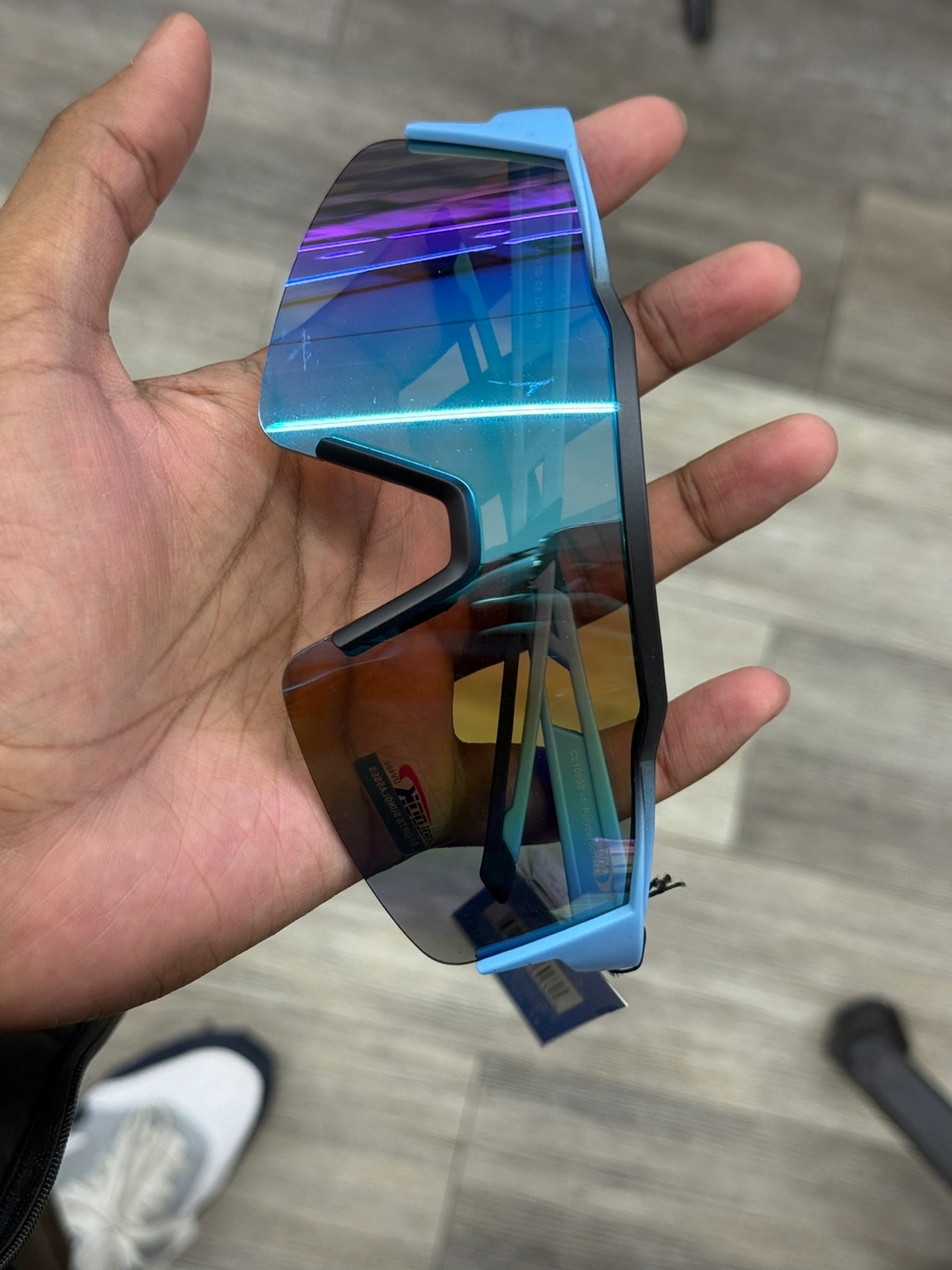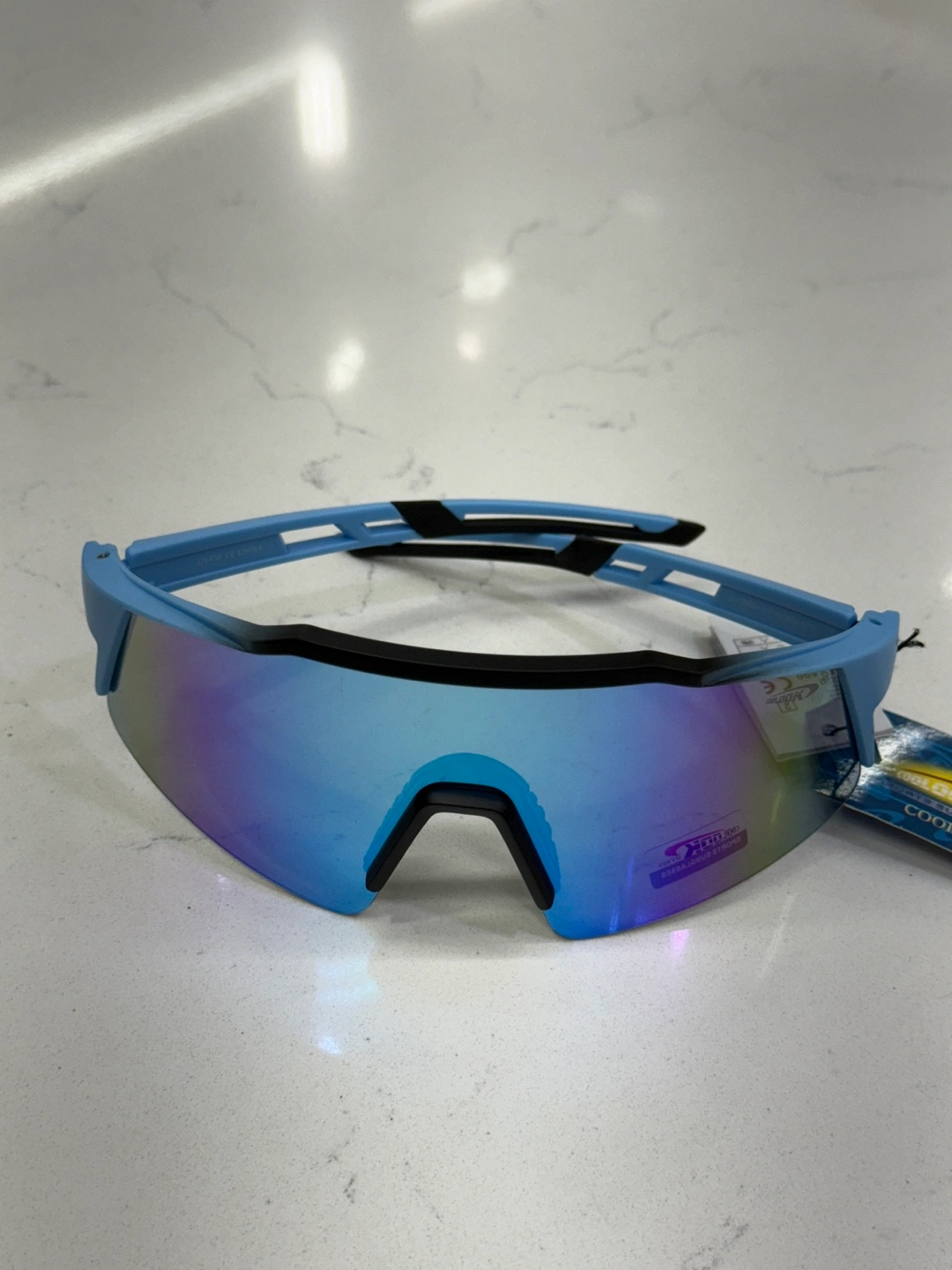 99New cool sunglasses. Blue frame, mirrored lenses. Protective case not included.