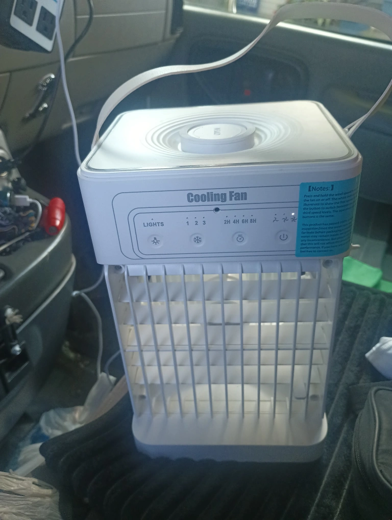 Selling a portable cooling fan! It has lights and multiple settings for different cooling levels and timer options. Perfect for personal use and easy to carry around