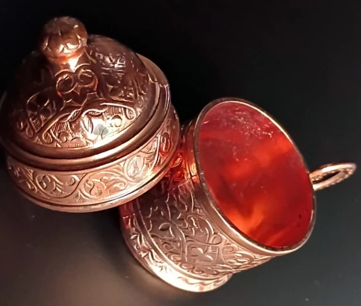 15Here's a beautiful copper cup with a lid, perfect for adding a touch of elegance to your tea or coffee ritual! The intricate design is really eye-catching