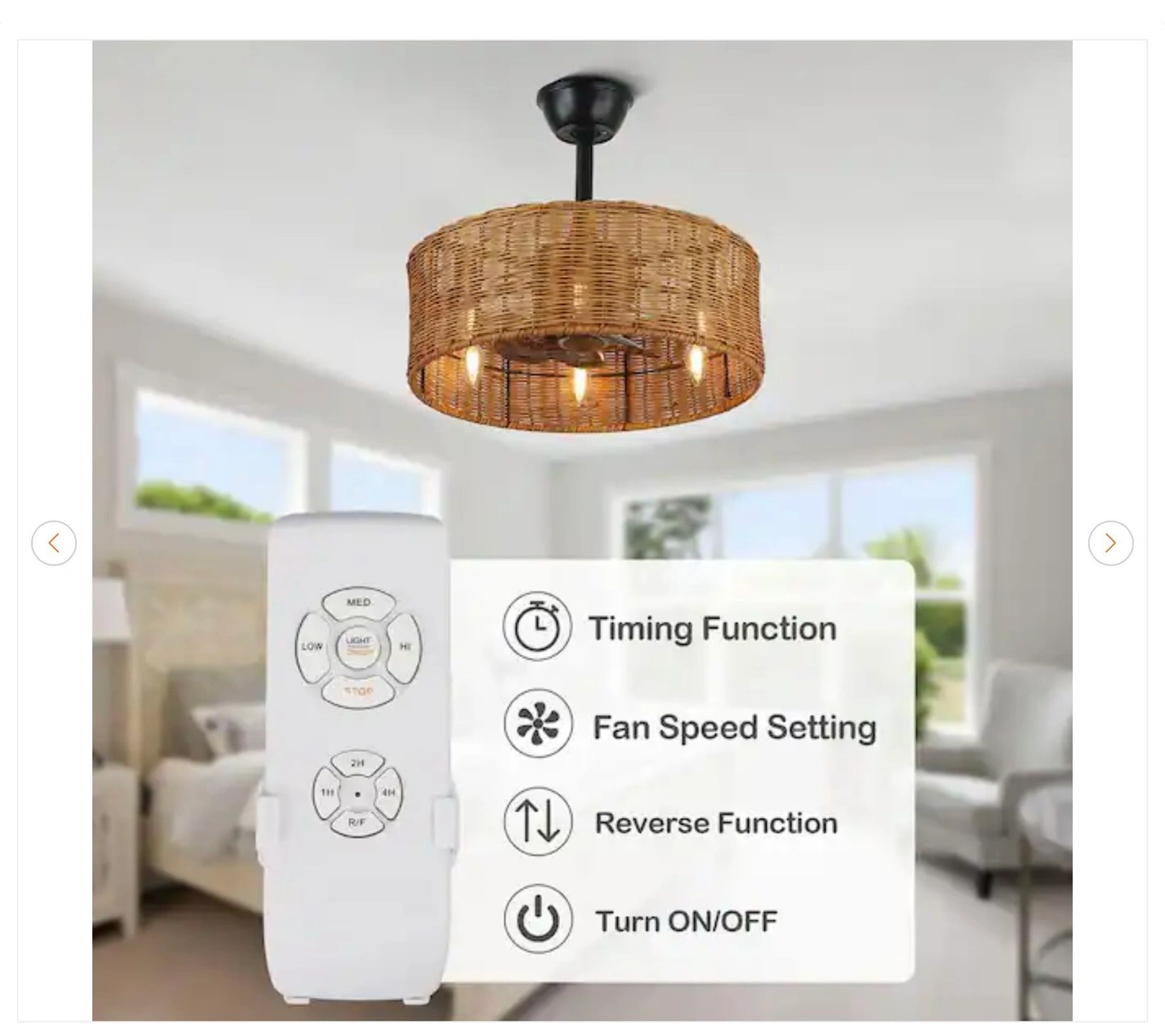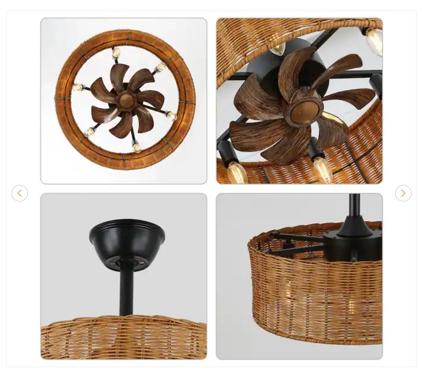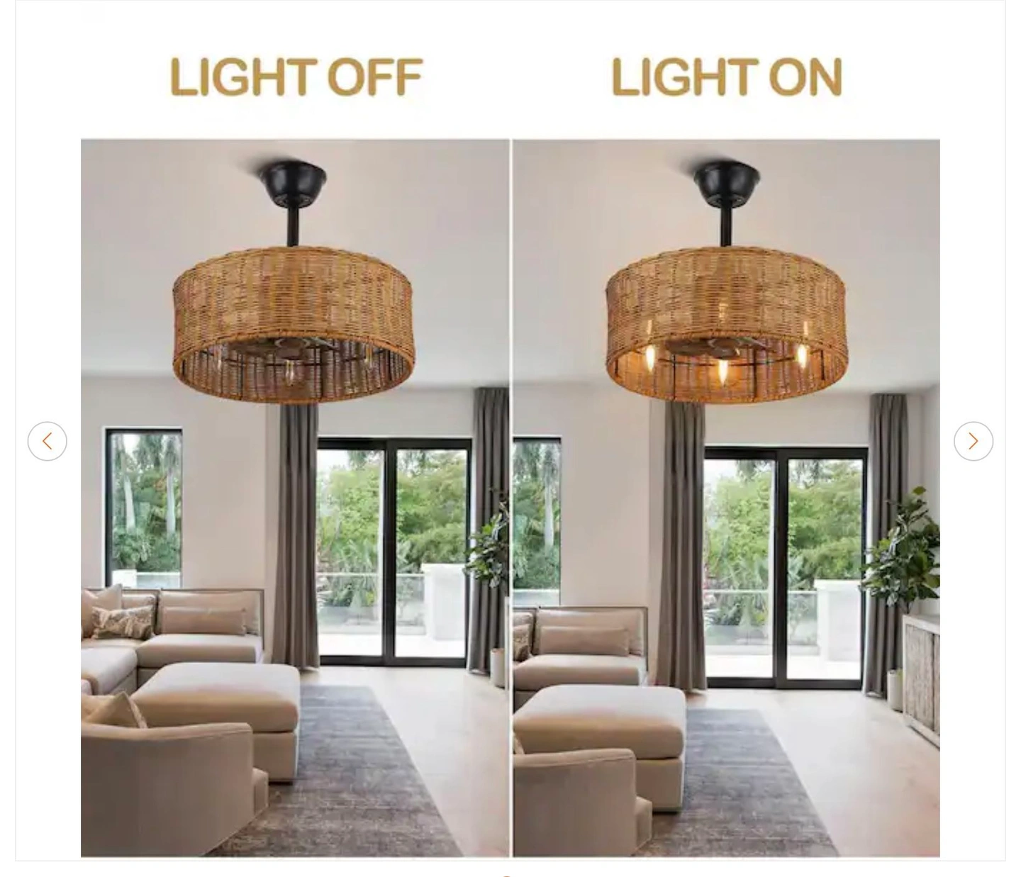 Brand New Oaks Aura Cora 20 in. Indoor Brown Rattan Wicker Scandi-Style Ceiling Fan with Lights, Zen-inspired 3- Speed Ceiling Fan w/Remote