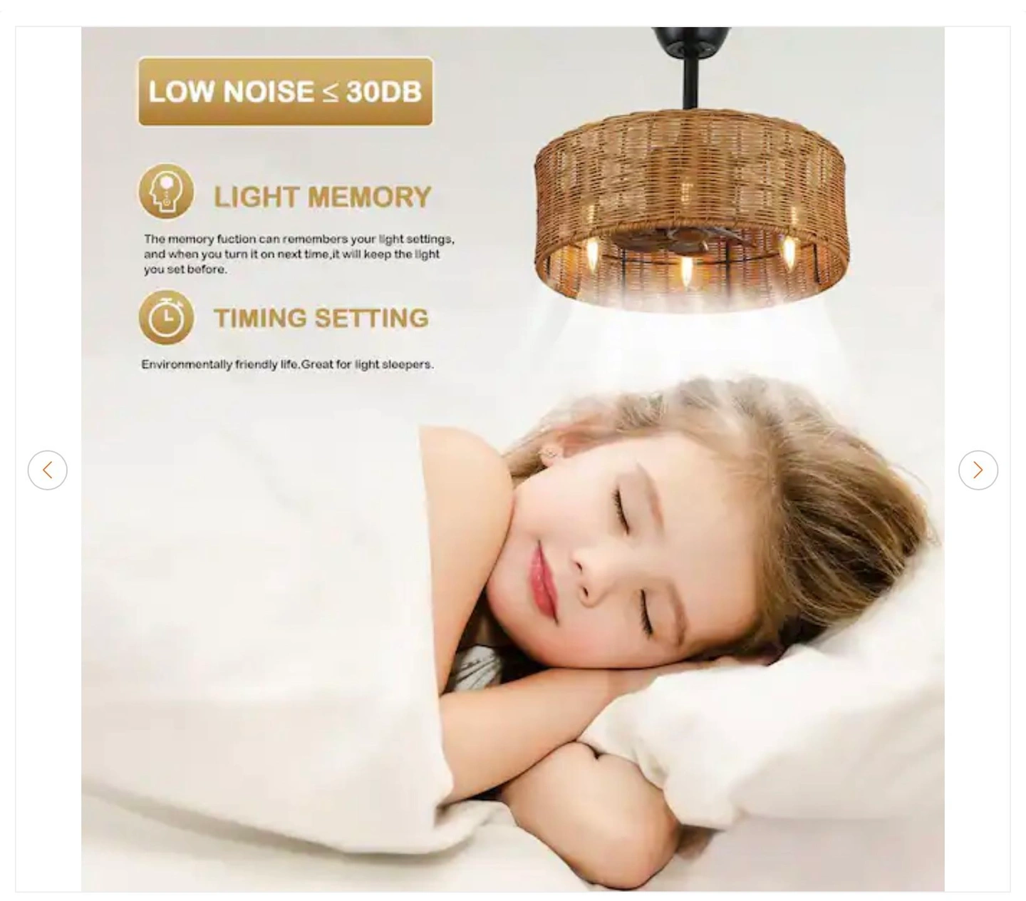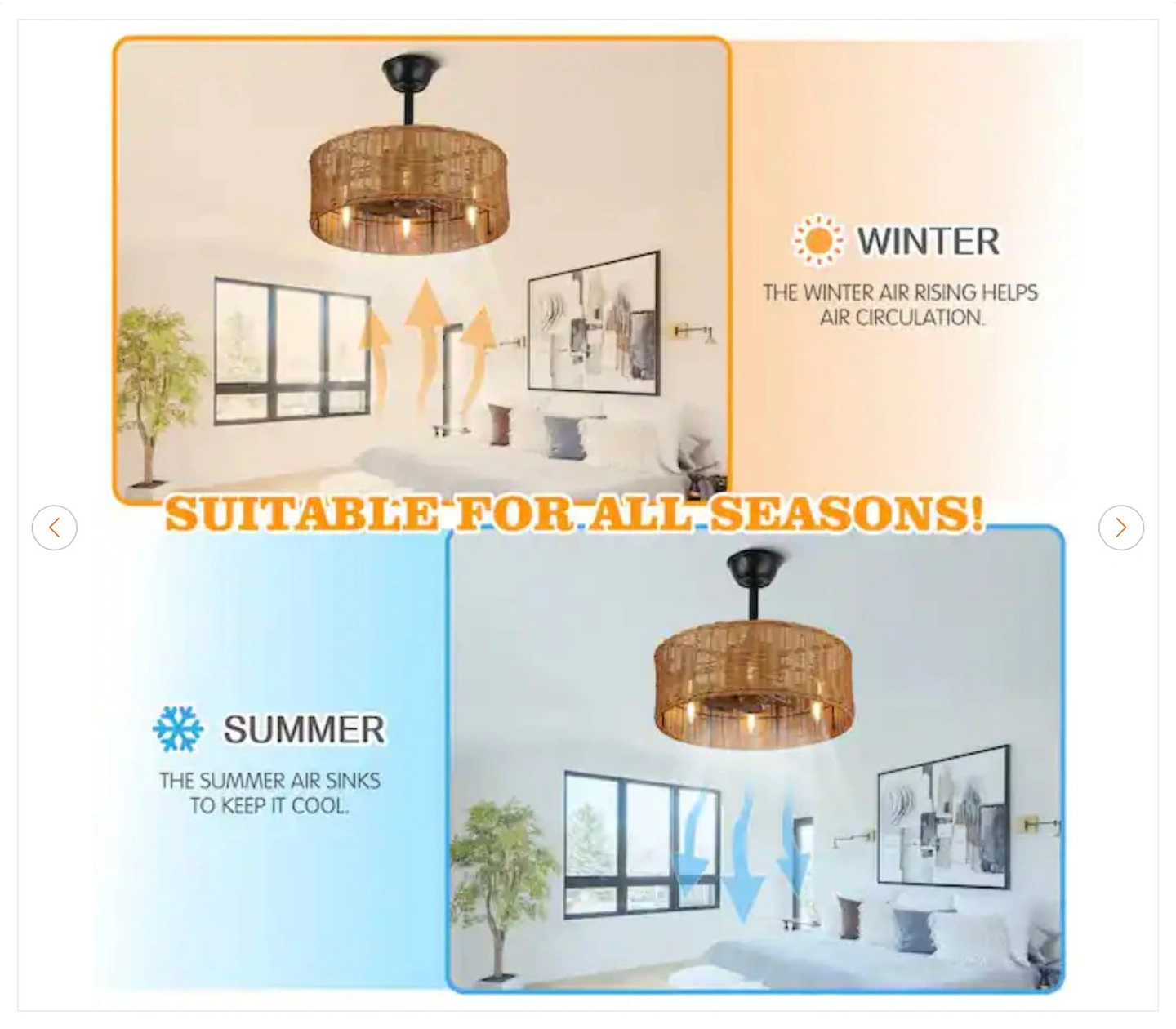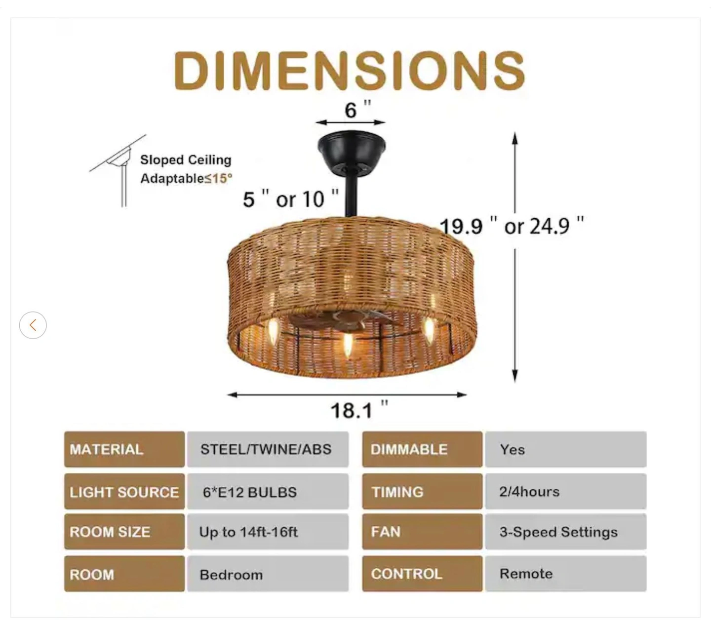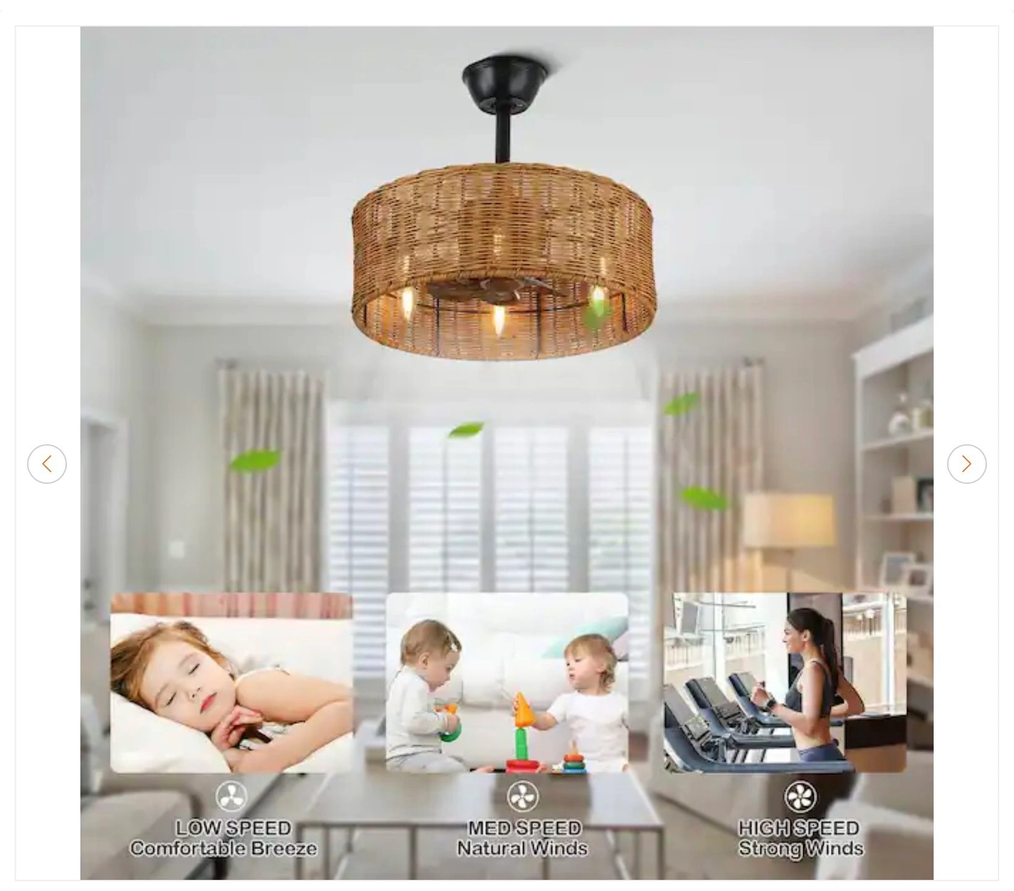 Brand New Oaks Aura Cora 20 in. Indoor Brown Rattan Wicker Scandi-Style Ceiling Fan with Lights, Zen-inspired 3- Speed Ceiling Fan w/Remote