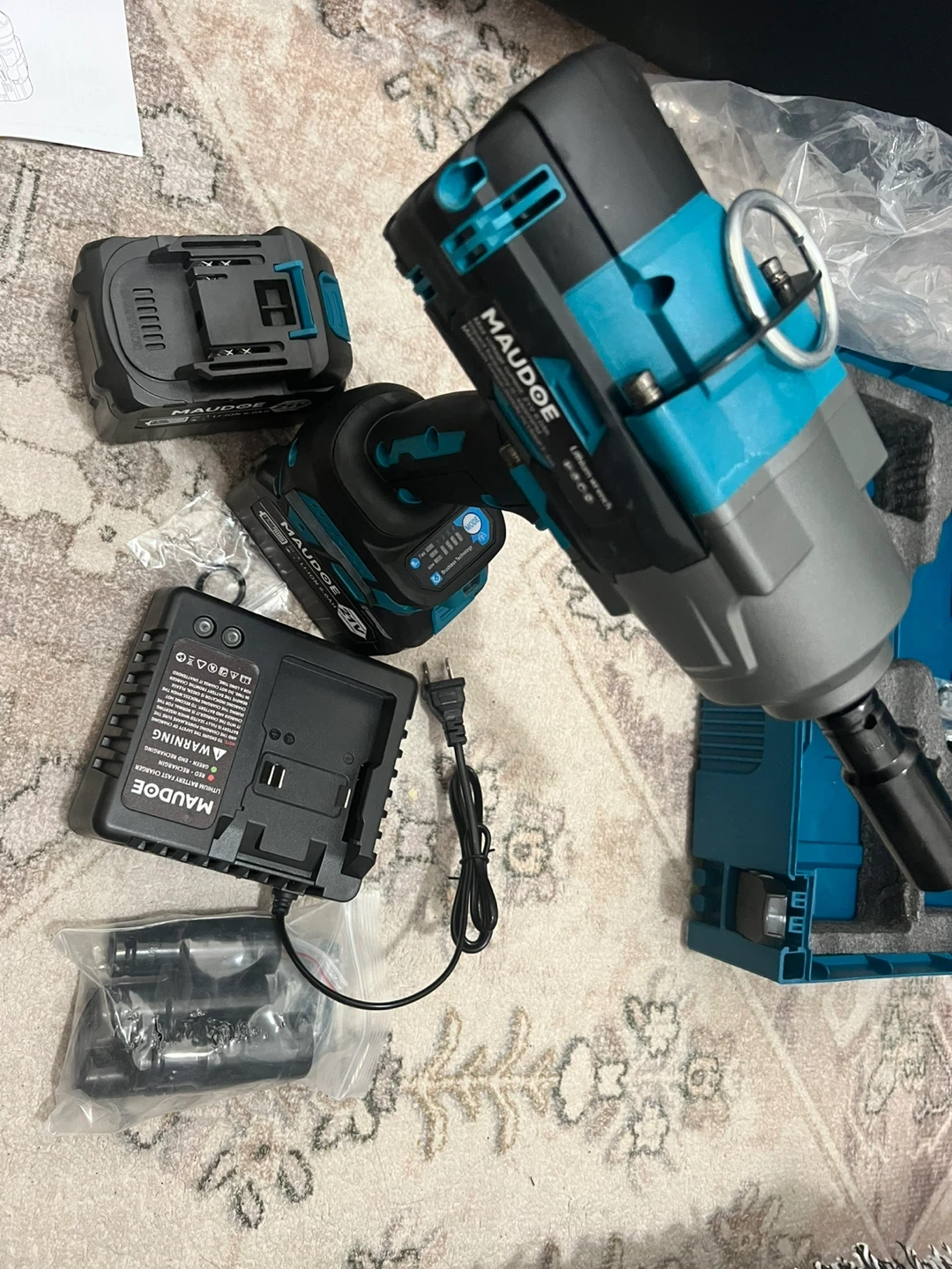 114Selling a cordless impact wrench kit. It includes the wrench, two batteries, a charger, and the carrying case. This is perfect for any DIY projects!