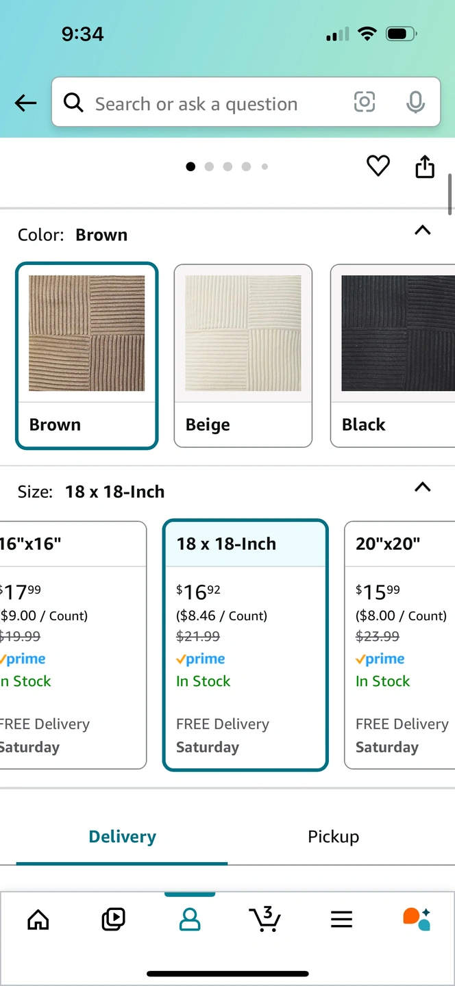Brand new set of 2, 18x18 inch square pillow covers in brown corduroy.