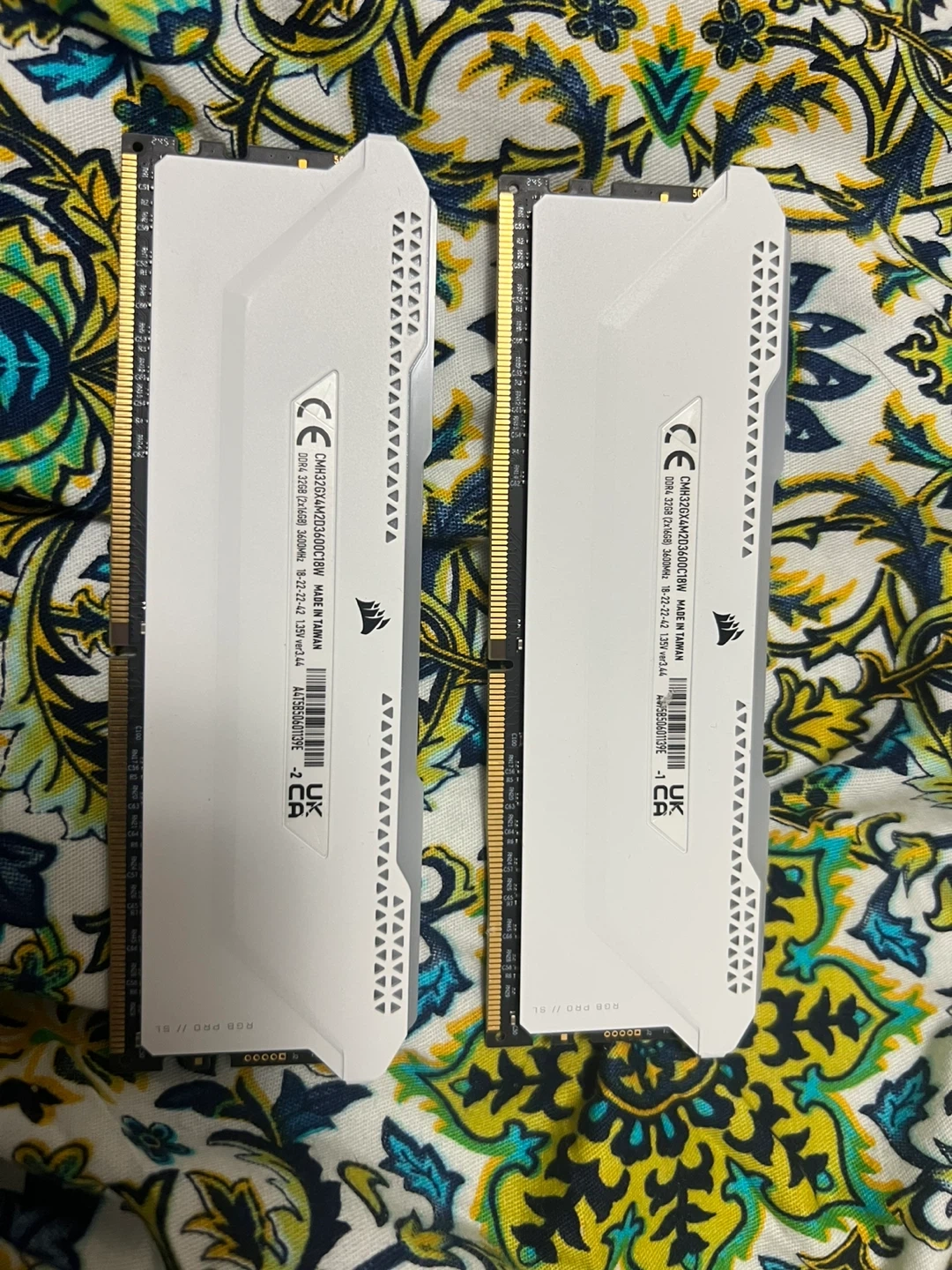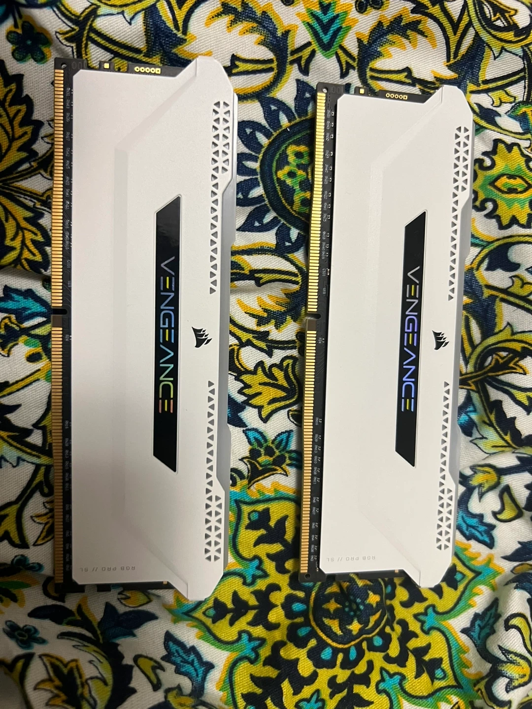 Selling a pair of Corsair Vengeance RGB PRO SL 16GB DDR4 3600MHz RAM sticks in white. They're in great condition and ready to upgrade your PC's performance. These are the low profile version, so they should fit in most builds!