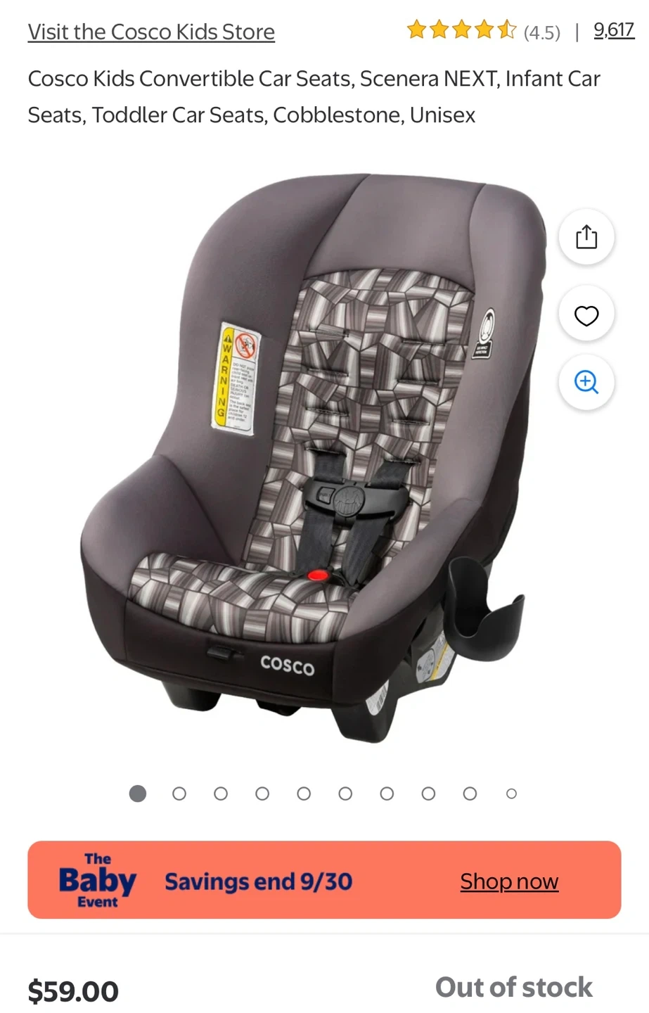 Selling a Cosco Scenera NEXT convertible car seat in the Cobblestone design! This car seat is suitable for infants and toddlers. It's in great condition.