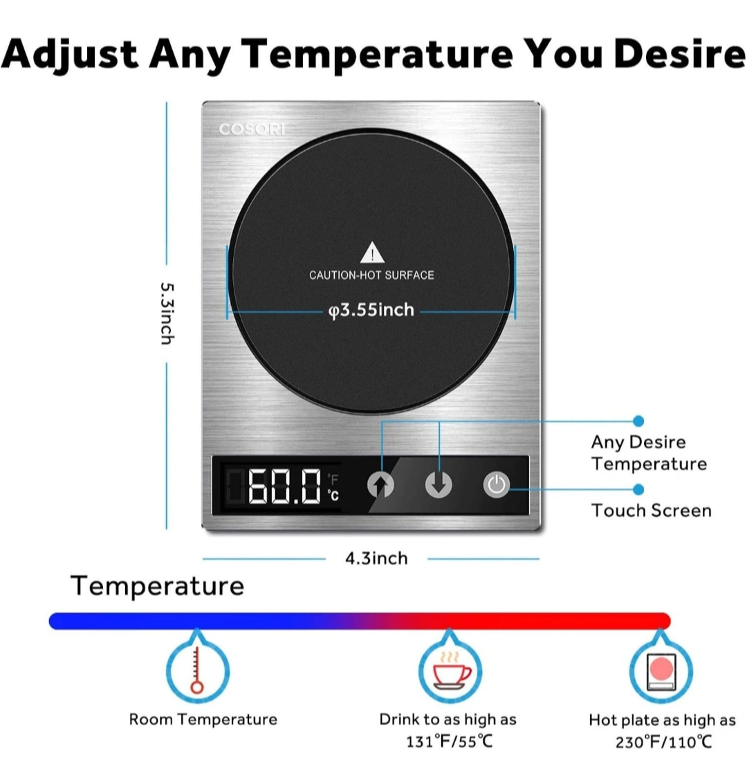 44Cosori Coffee mug warmer and mug set New In Box Whitestone Queens 11357 1°F Precise Temperature Control, Touch Tech & LCD Digital Display (77-194℉), 304 Stainless Steel, Silver/Black