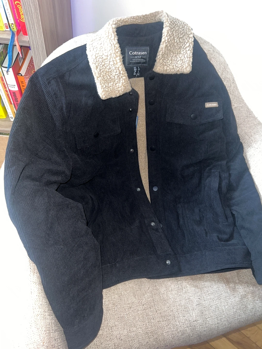 60Selling a Cotrasen corduroy jacket with a sherpa collar! It's a size USA Small and comes in black. The jacket is NEW in great condition and ready for a new home.