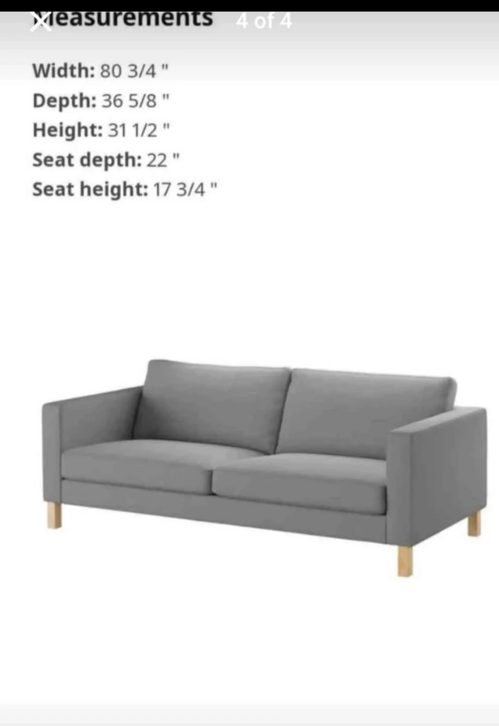 64Ikea karlstad 3 seat sofa Grey Great condition No pets or smoking Dimensions are in the pictures I will deliver to your door in the city or suburbs depending on distance