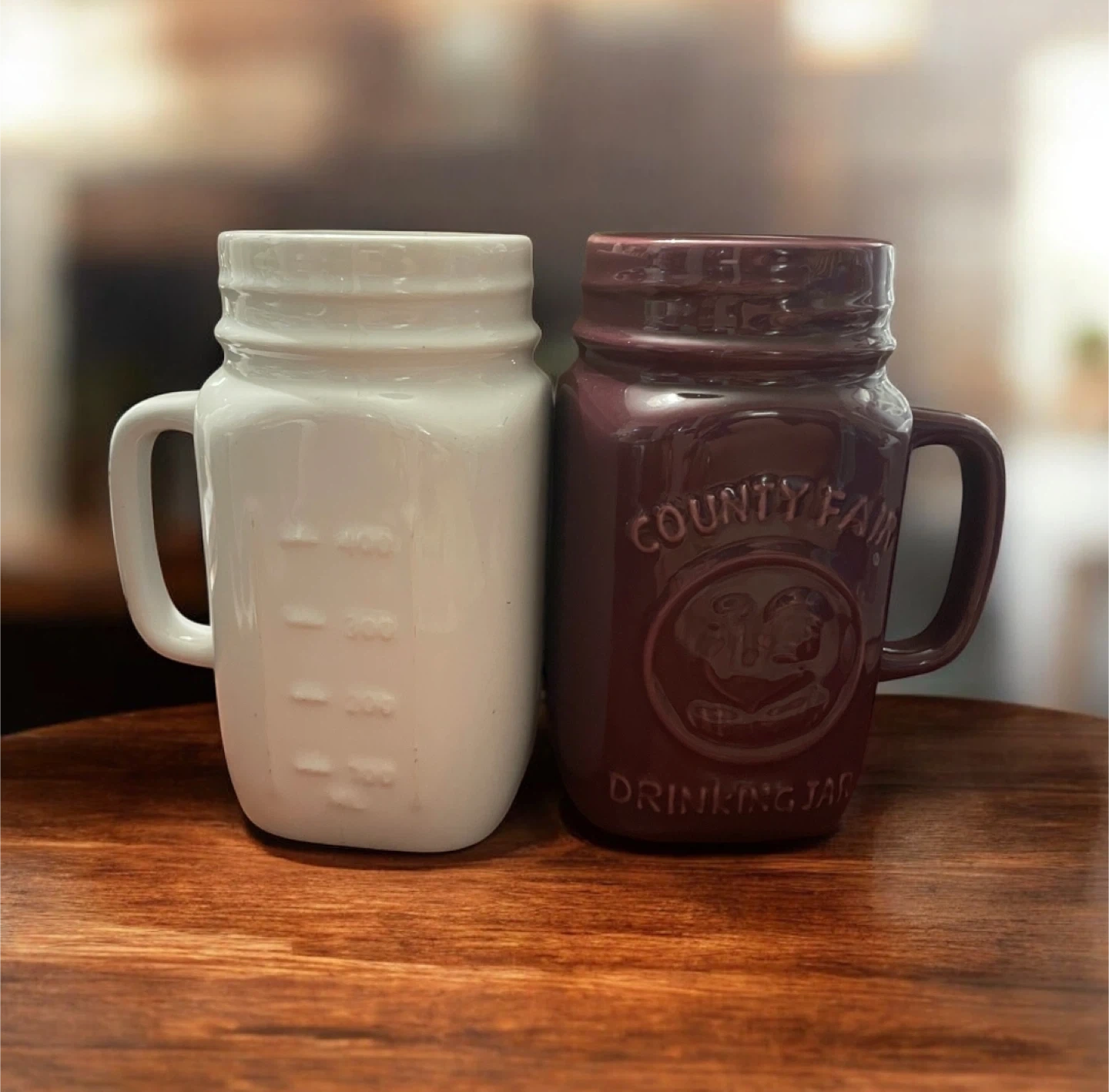Selling a set of six “County Fair”Drinking Jar mugs! These are perfect for adding a touch of rustic charm to your kitchen or for enjoying your favorite beverages. One mug features measurement markings, while the other has an embossed rooster design. Both are in great condition and ready for a new home. Brand new. Used for decoration in a china cabinet.