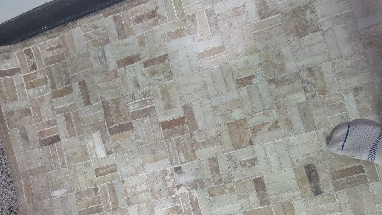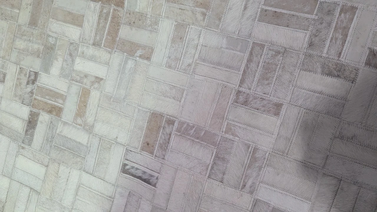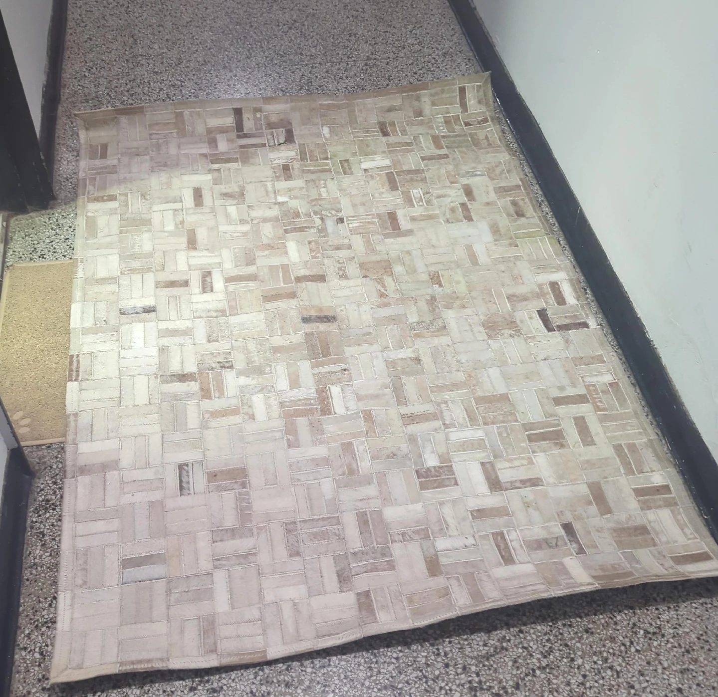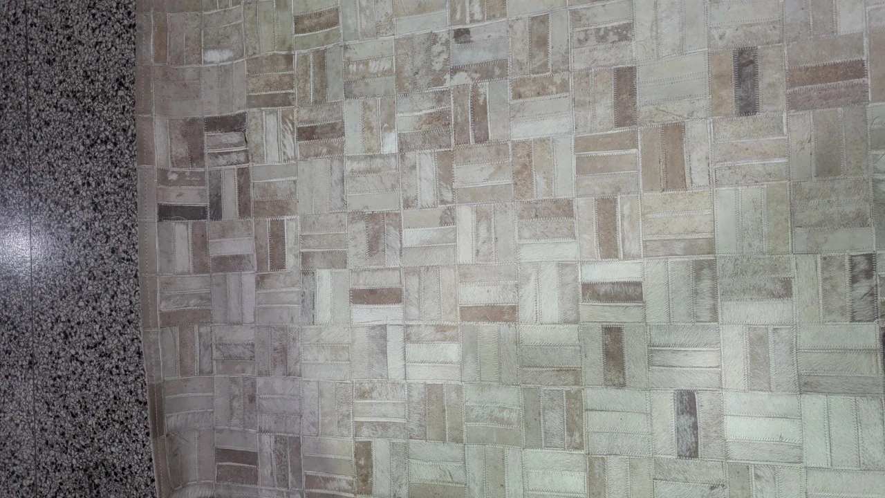 74Selling a cowhide patchwork rug. It has a unique pattern and would look great in any room! The rug is in good condition.