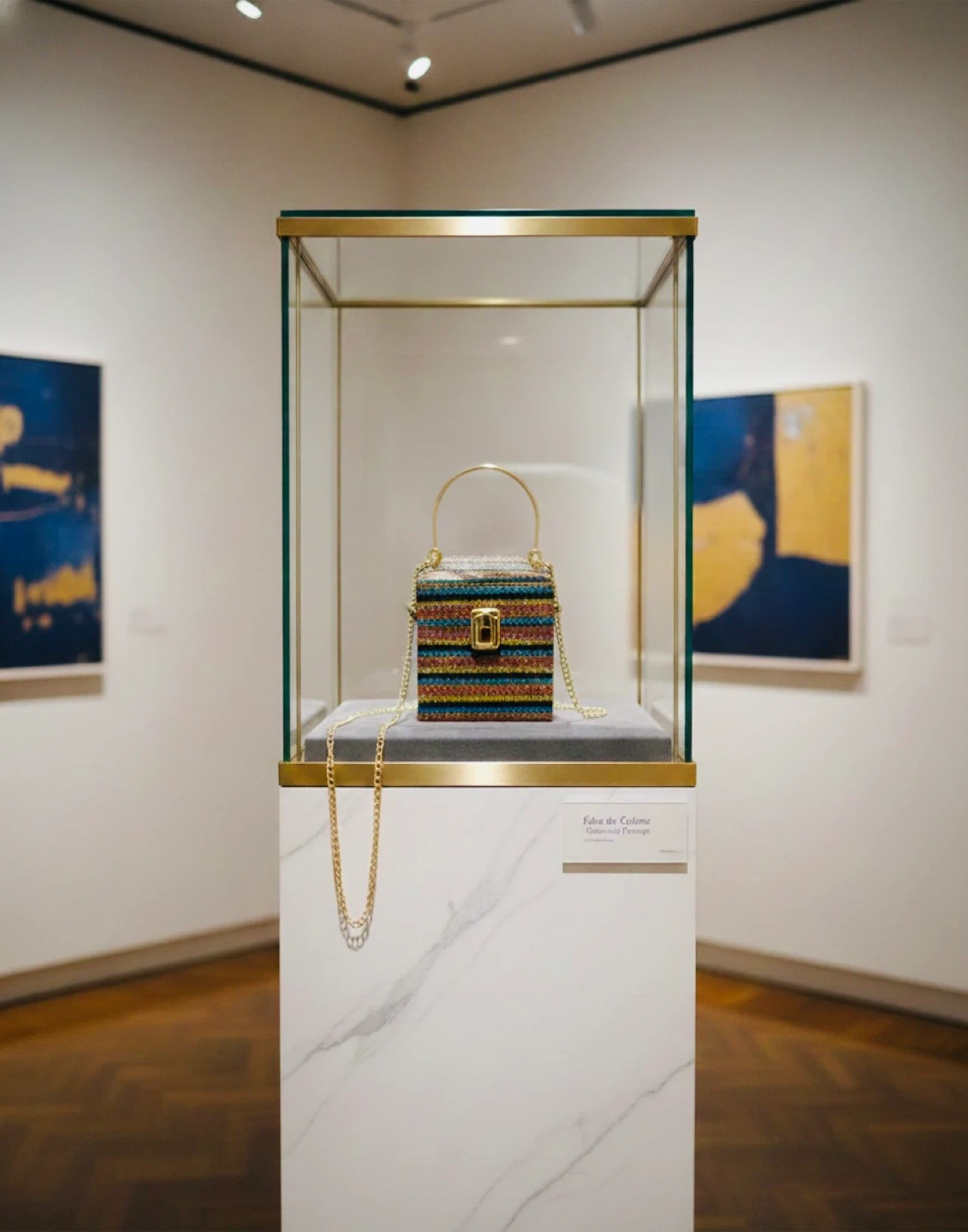 It's a unique and stylish accessory that can elevate any outfit. The intricate hand-woven design adds a touch of sophistication and charm. Perfect for adding a pop of color and texture to your look