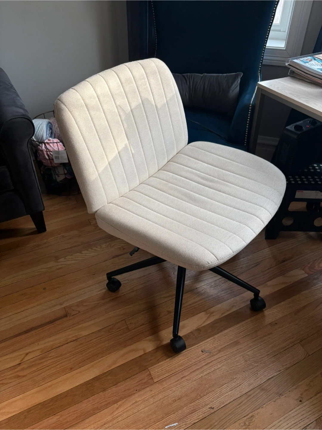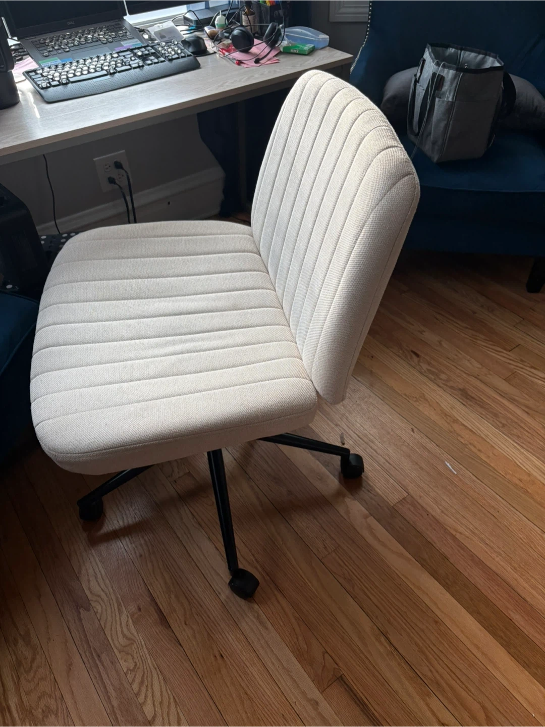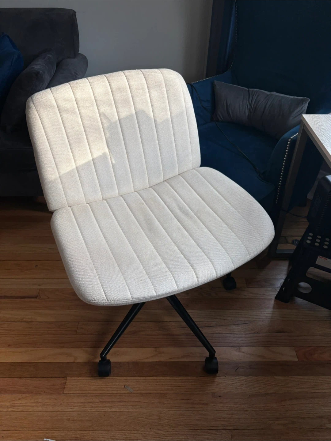 Almost new Criss Cross Chair with Wheels Wide Cross Legged Office Desk Vanity Chair Comfy Fabric Armless Adjustable Swivel for Home Computer Task Fabric Beige