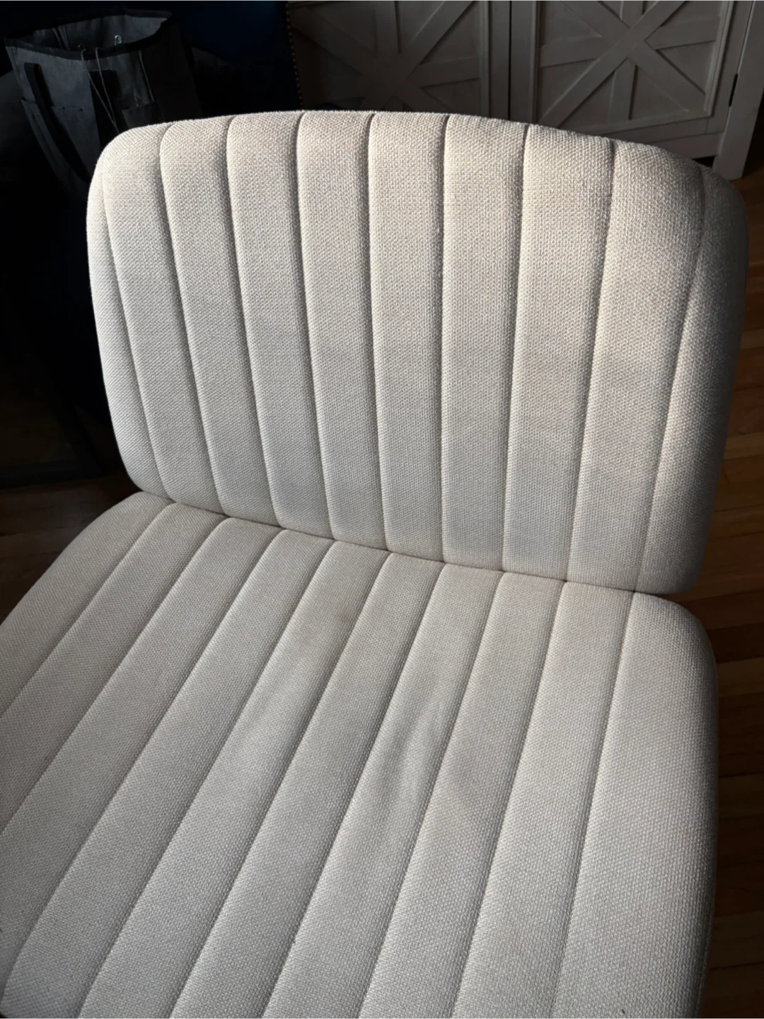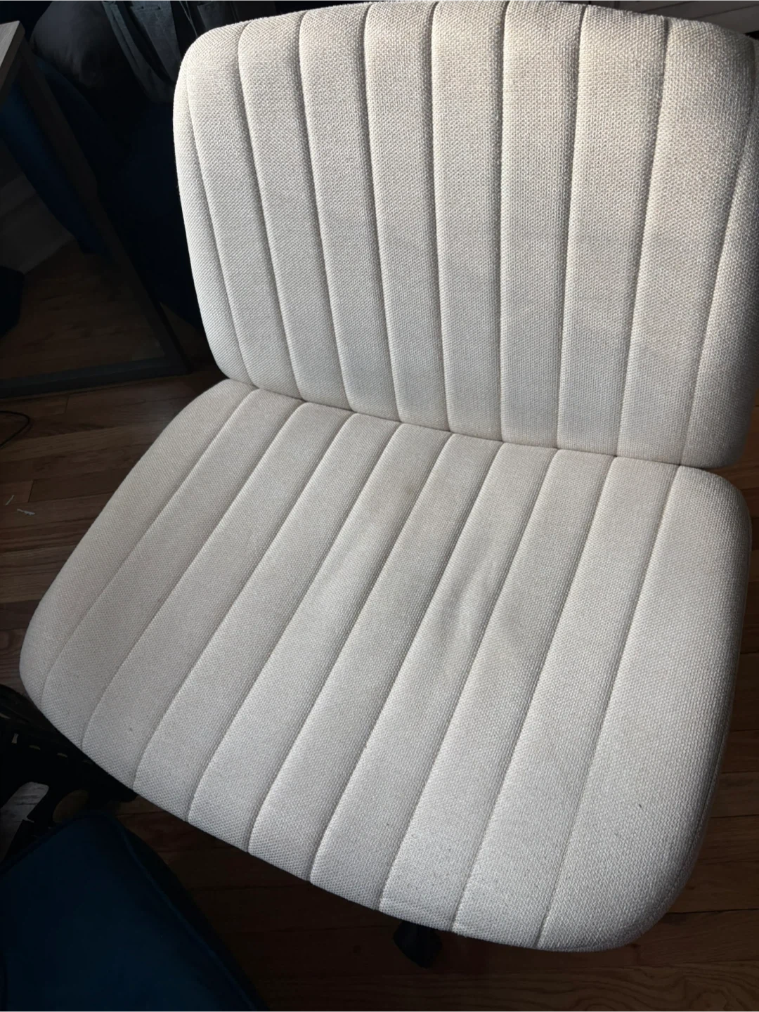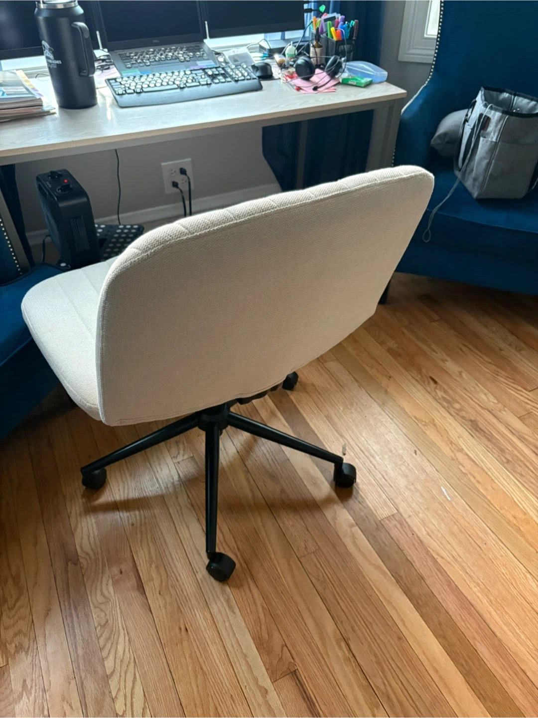 Almost new Criss Cross Chair with Wheels Wide Cross Legged Office Desk Vanity Chair Comfy Fabric Armless Adjustable Swivel for Home Computer Task Fabric Beige