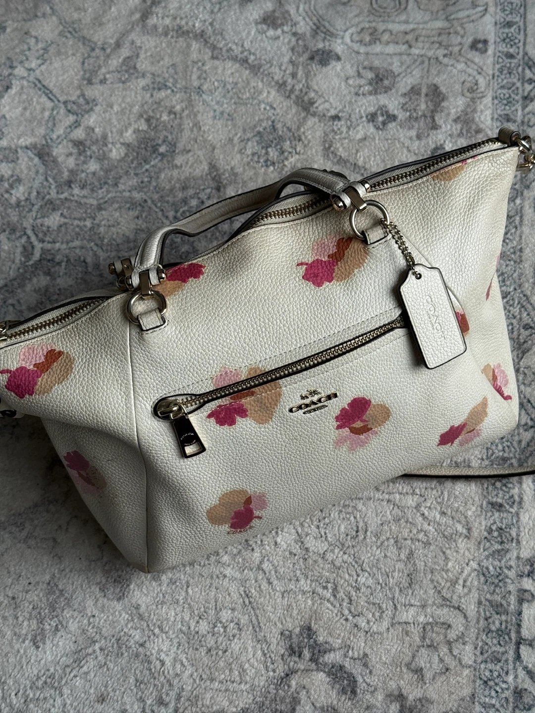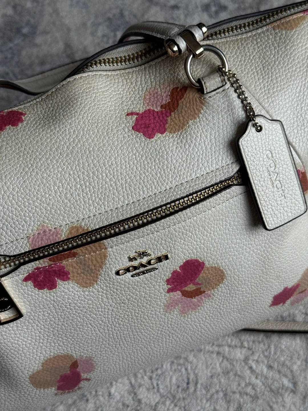 PERFECT GIFT FOR VALENTINES DAY 💗This is a Coach satchel handbag. It's white pebbled leather with a floral print. Made from the finest materials, it's handcrafted for superior craftsmanship and attention to detail. This bag is perfect for everyday use!