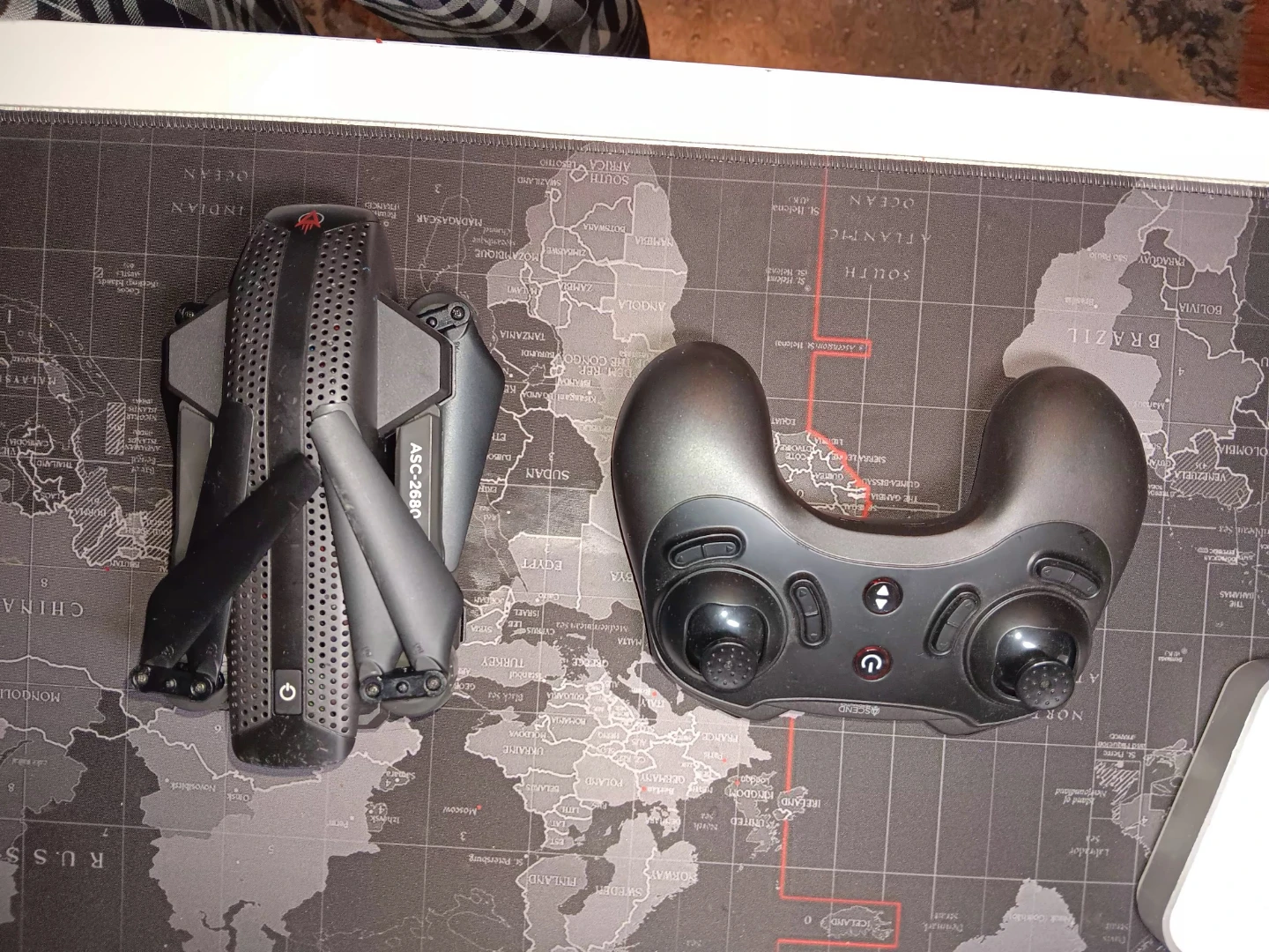 Black foldable drone with a matching remote controller. Includes propellers and appears to be made of plastic. Great for beginner drone enthusiasts!