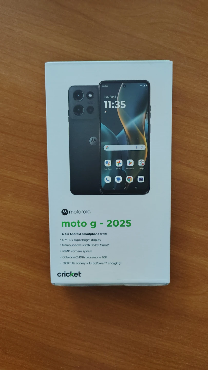 Brand new, sealed Motorola Moto G 2025 smartphone. It's a 5G Android device with a 6.7-inch HD+ display. Features a 50MP camera system and a 5000mAh battery with TurboPower charging.