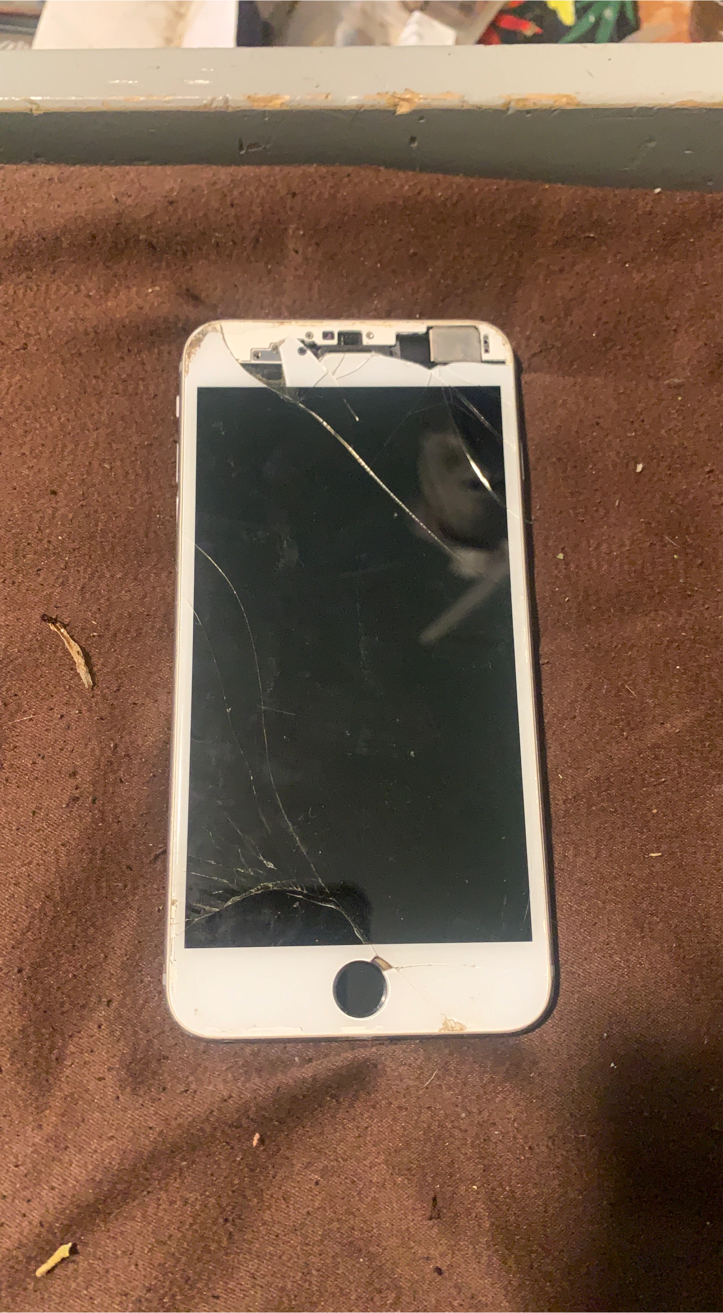 The screen is cracked and the corner is broken
