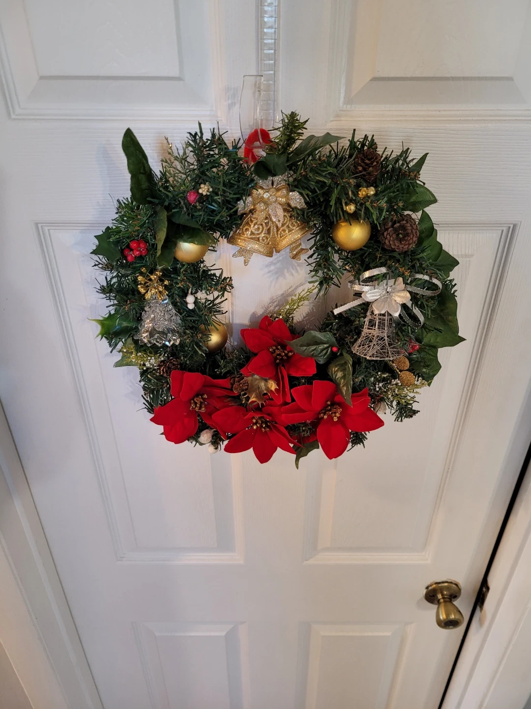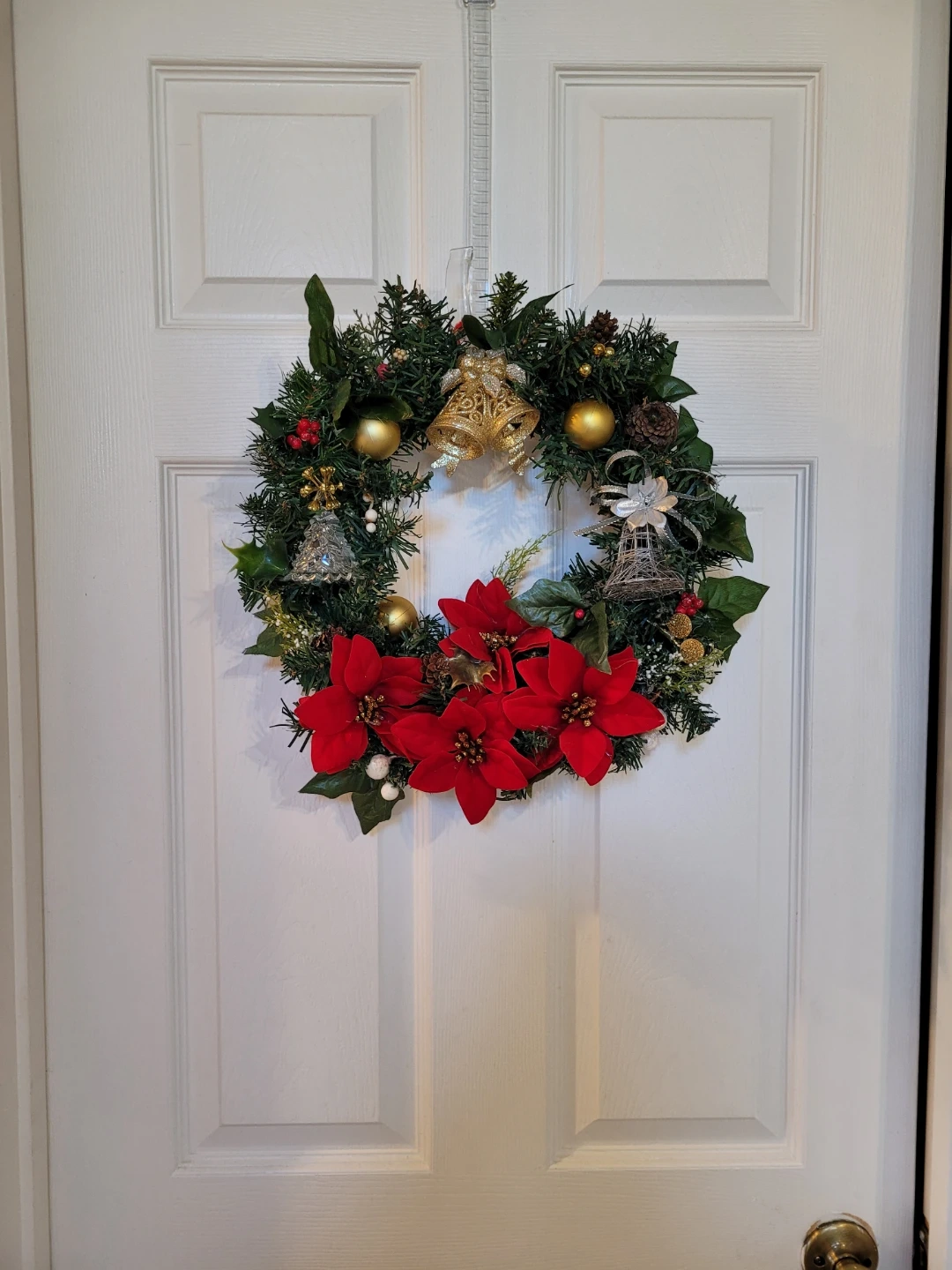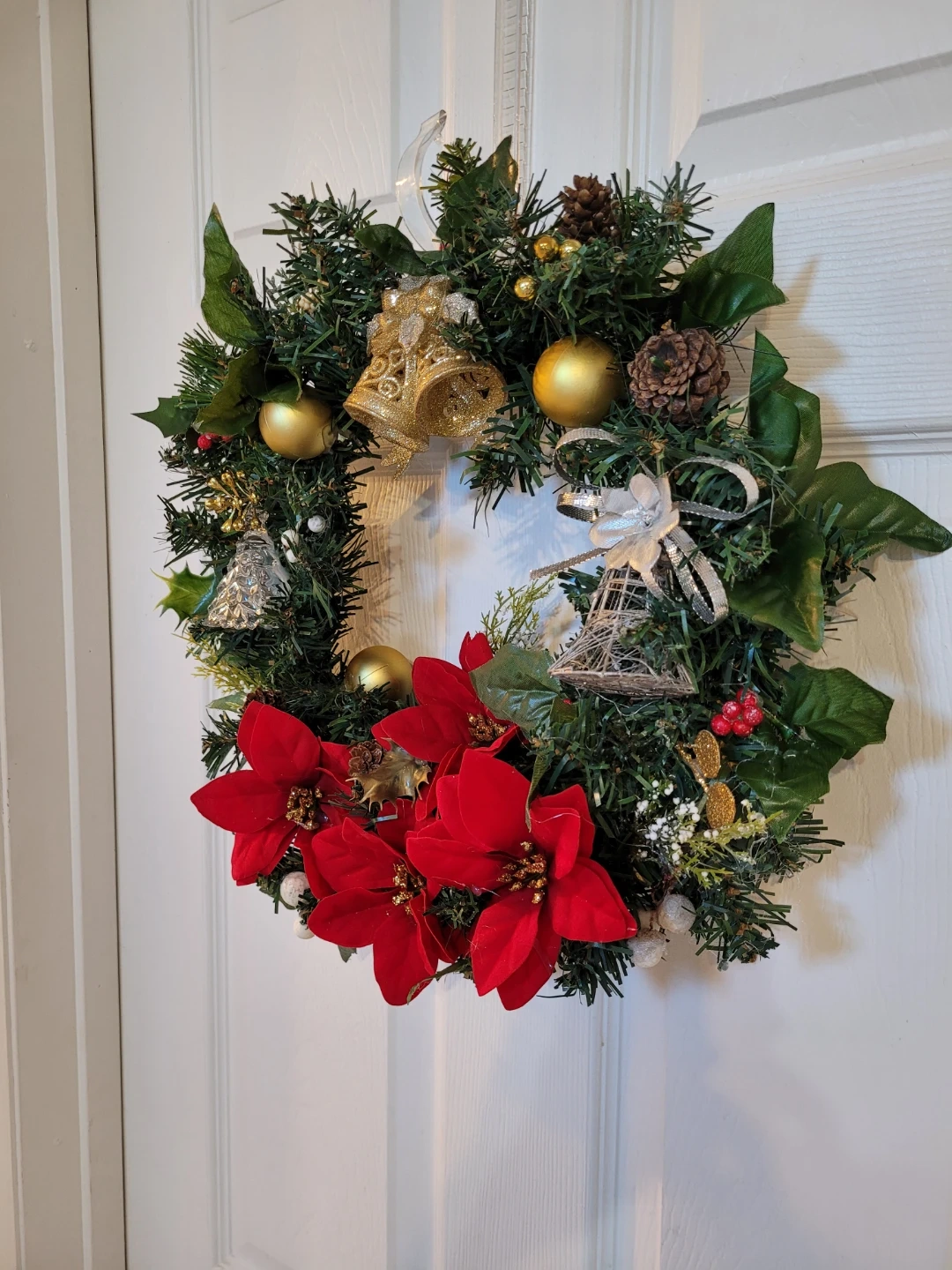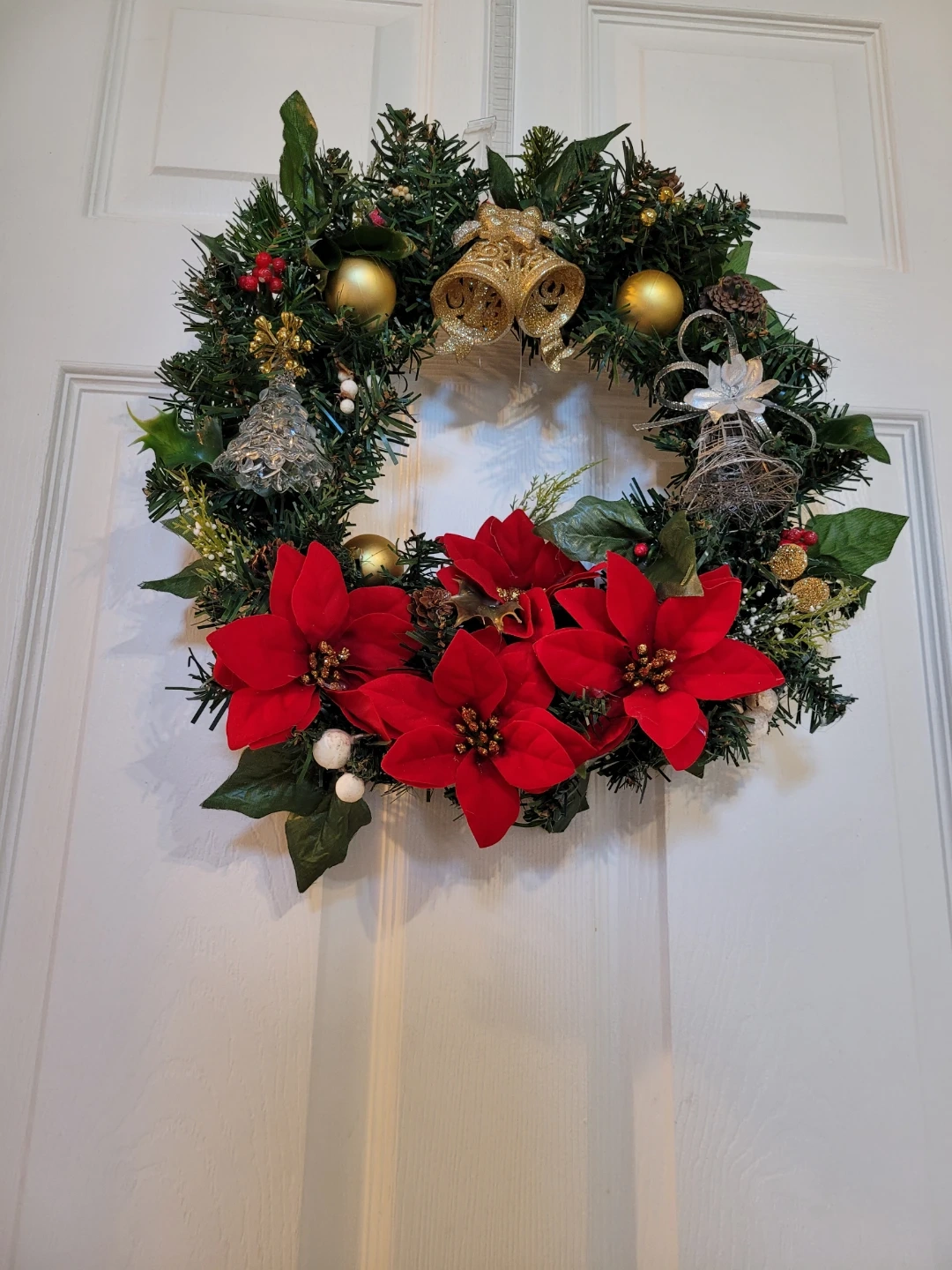 Crafted Christmas Wreath w/ Poinsettias & Bells ๐
