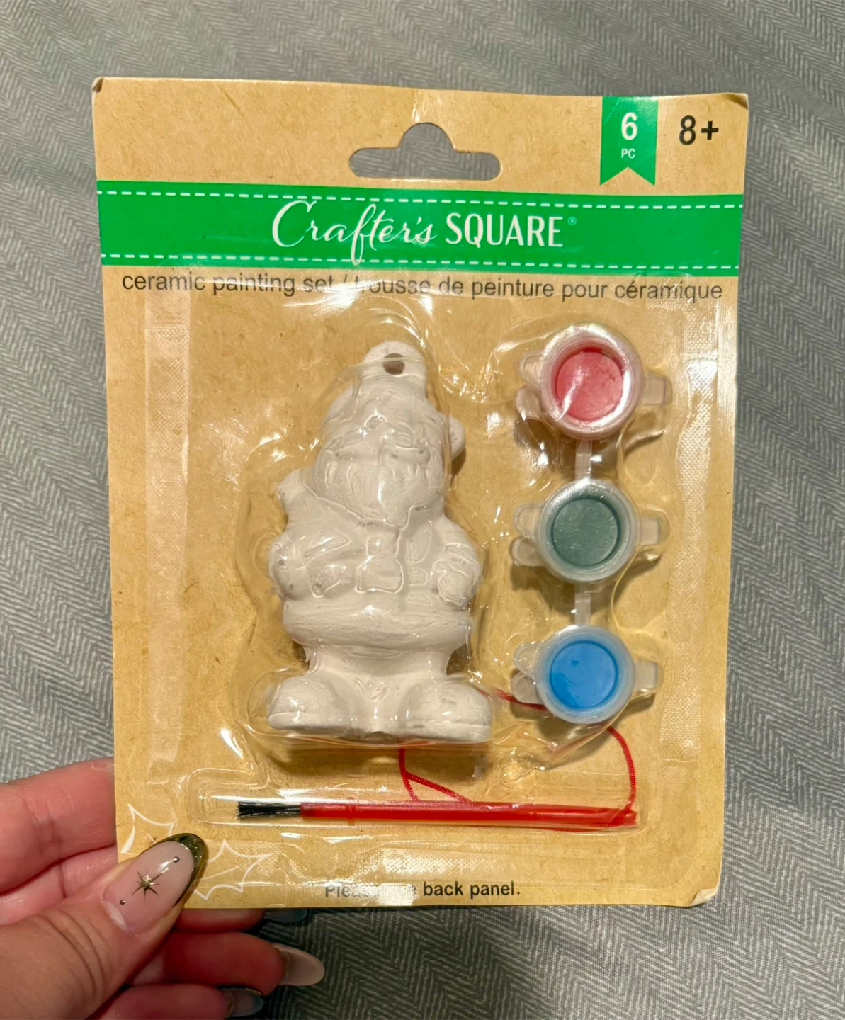 Ibrand new Crafter's Square ceramic painting set! It includes 6 pieces and is recommended for ages 8+ DIY paint ceramic Santa ornament.