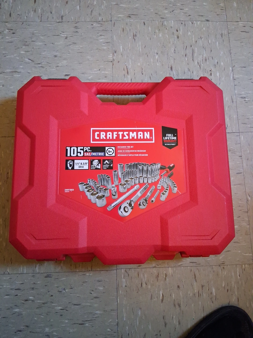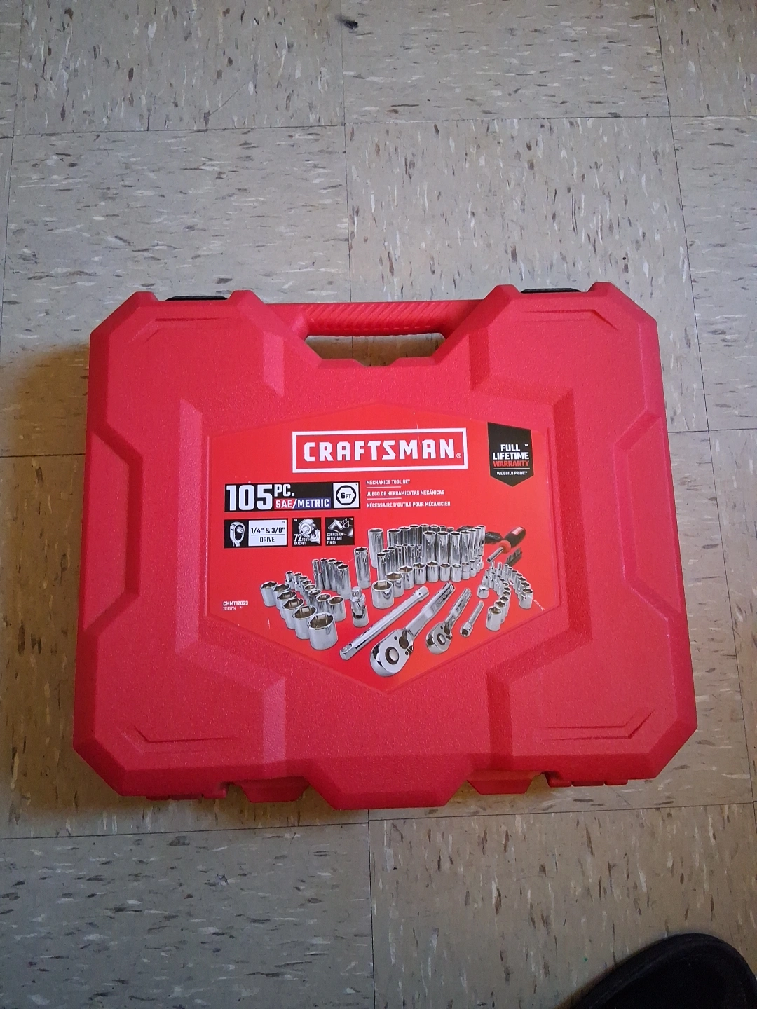15Selling a Craftsman 105-piece mechanics tool set. It comes in a red case and includes both SAE and metric sockets. It's a 1/4" and 3/8" drive set with a 72-tooth ratchet. Perfect for any DIY projects!