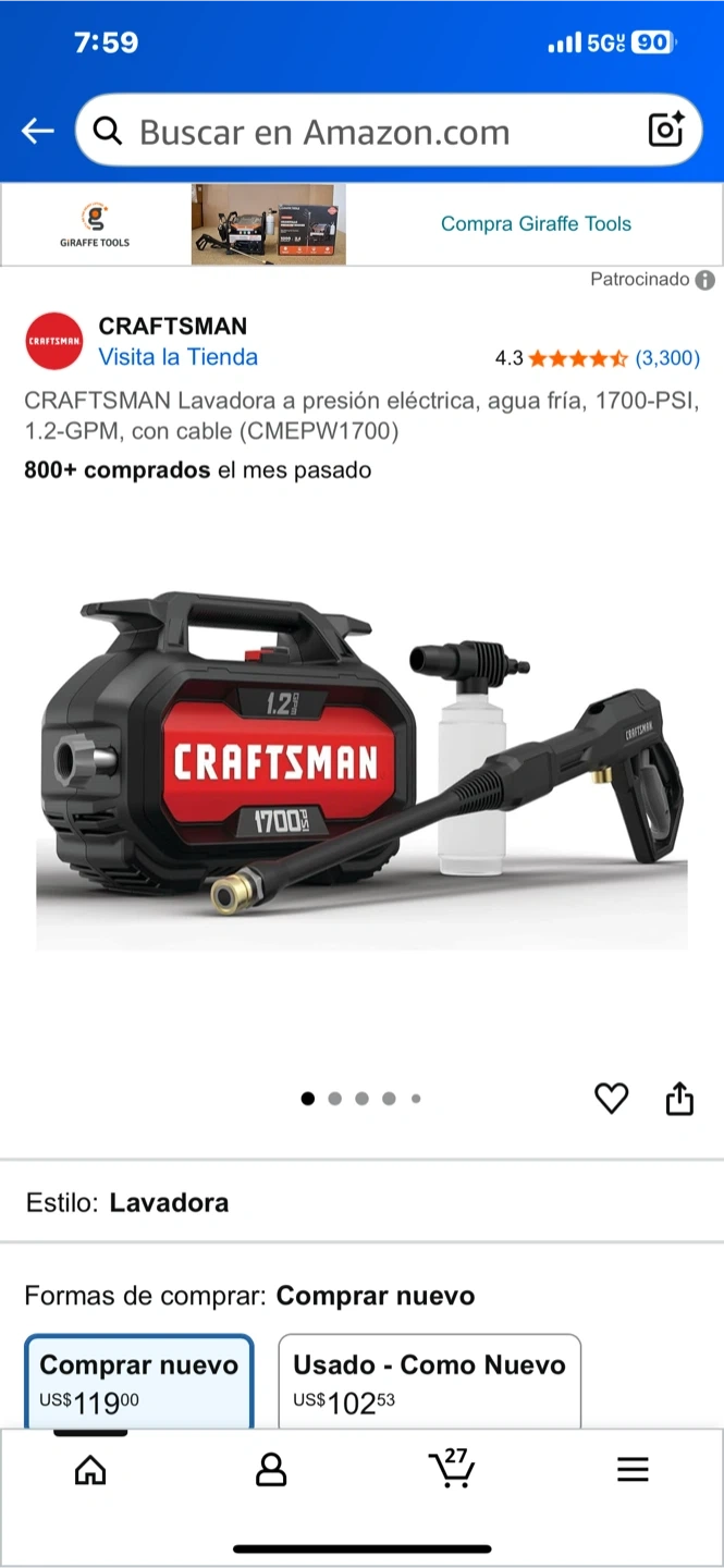 Selling a CRAFTSMAN electric pressure washer. It delivers 1700 PSI and 1.2 GPM, perfect for various cleaning tasks. It comes with a cable and is model CMEPW1700. Originally listed for US$119.00