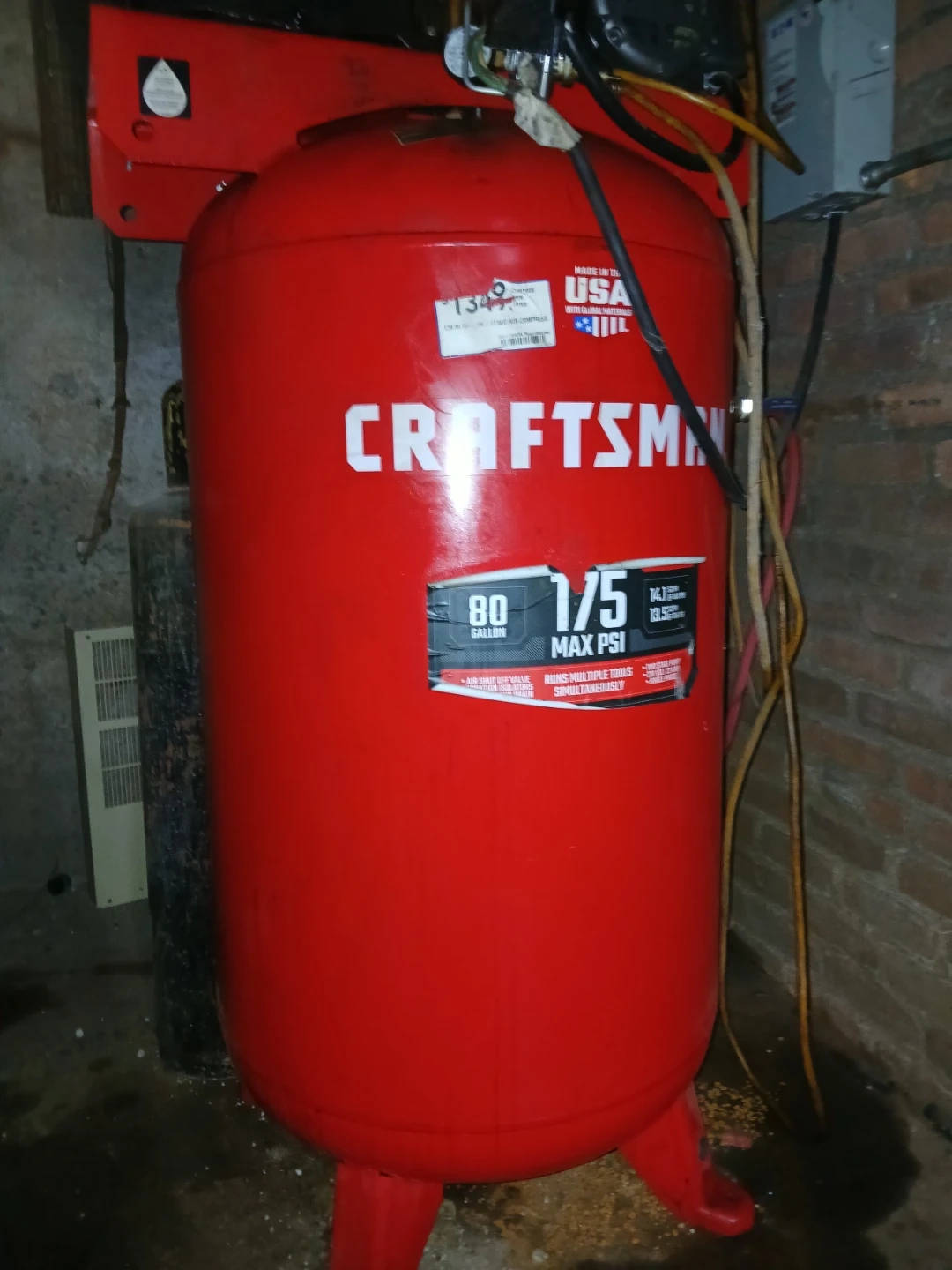 60I'm selling a Craftsman air compressor. It has an 80-gallon capacity and a 175 max PSI. It runs multiple tools simultaneously.
