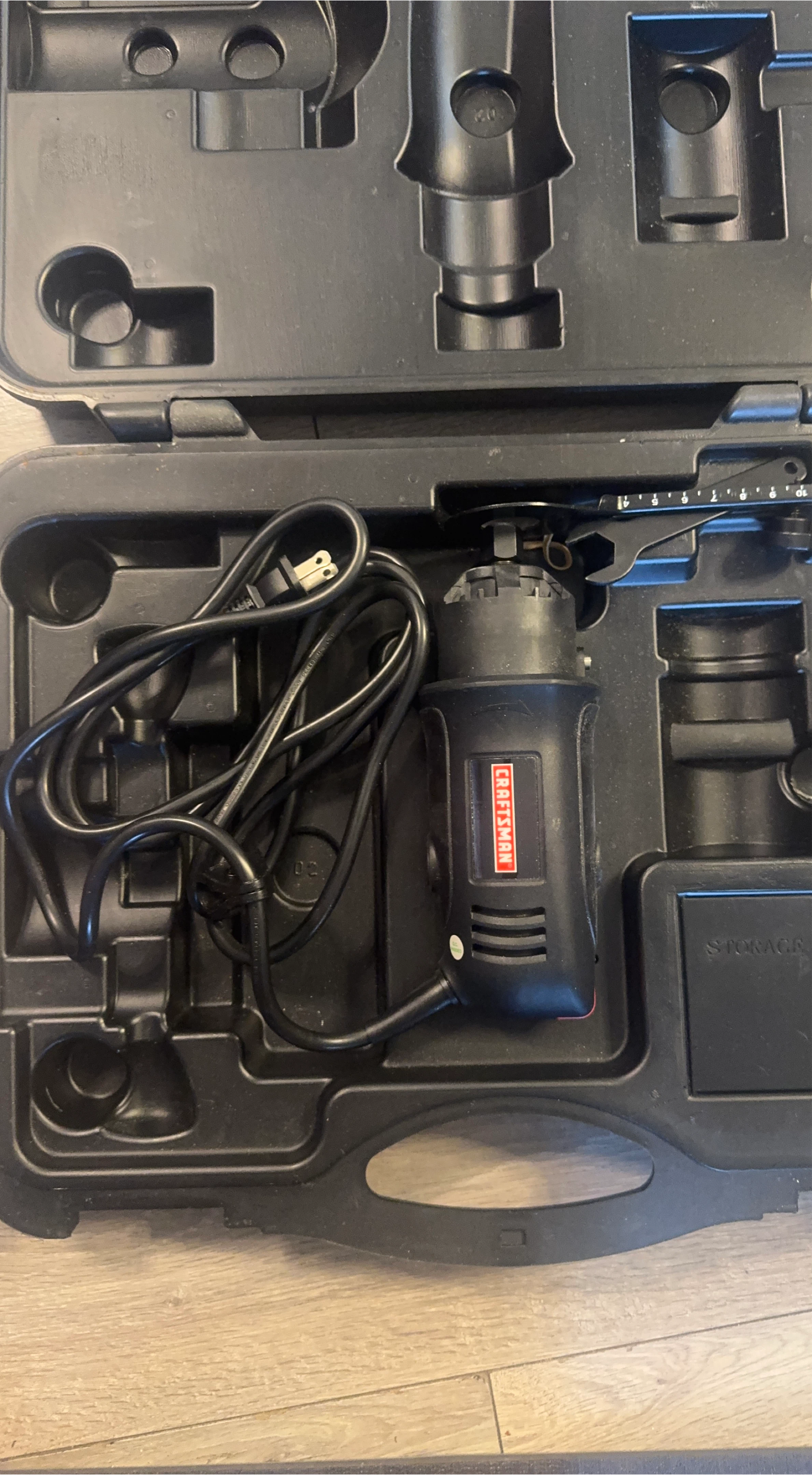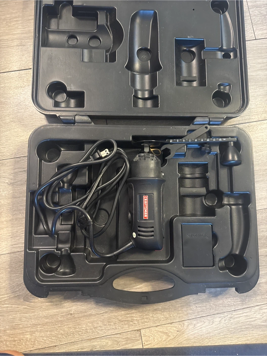 Selling a Craftsman router that comes with its original case and all the included components. It's in good condition and ready for your next woodworking project. Text me when you’re ready to buy available Saturday and Sunday morning.