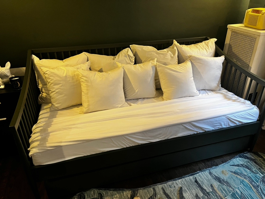 10I absolutely LOVE this set but have decided to convert this room to a walk in closet. Prices includes Daybed, Trundle, pillows and sheet set. Price for Daybed w/out the trundle is $1000. See photos for measurements. Home has dogs but not allowed on furniture in this room. Pickup location is near Harlem/Lake in Oak Park. It’s a 3 story walk up. No elevator. Must pickup and carry. Cash is king/queen👑 No low ball offers. Serious inquiries only. Cross posted. 5 star seller on Facebook Marketplace
