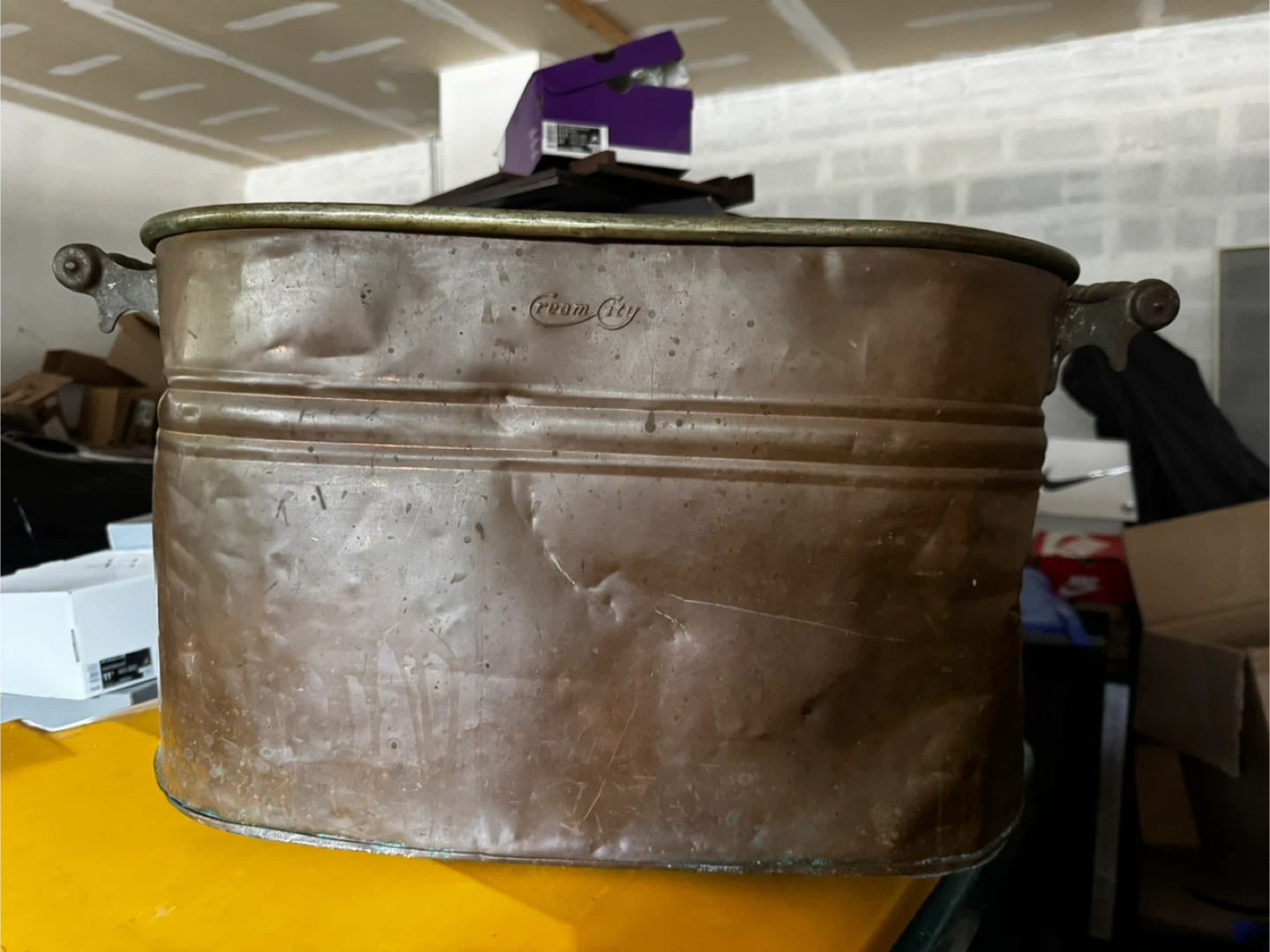 Selling a Cream City copper boiler tub. It's a great vintage piece with a unique look! Perfect for adding a touch of rustic charm to your home or garden.