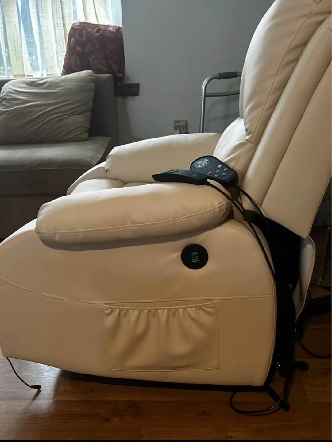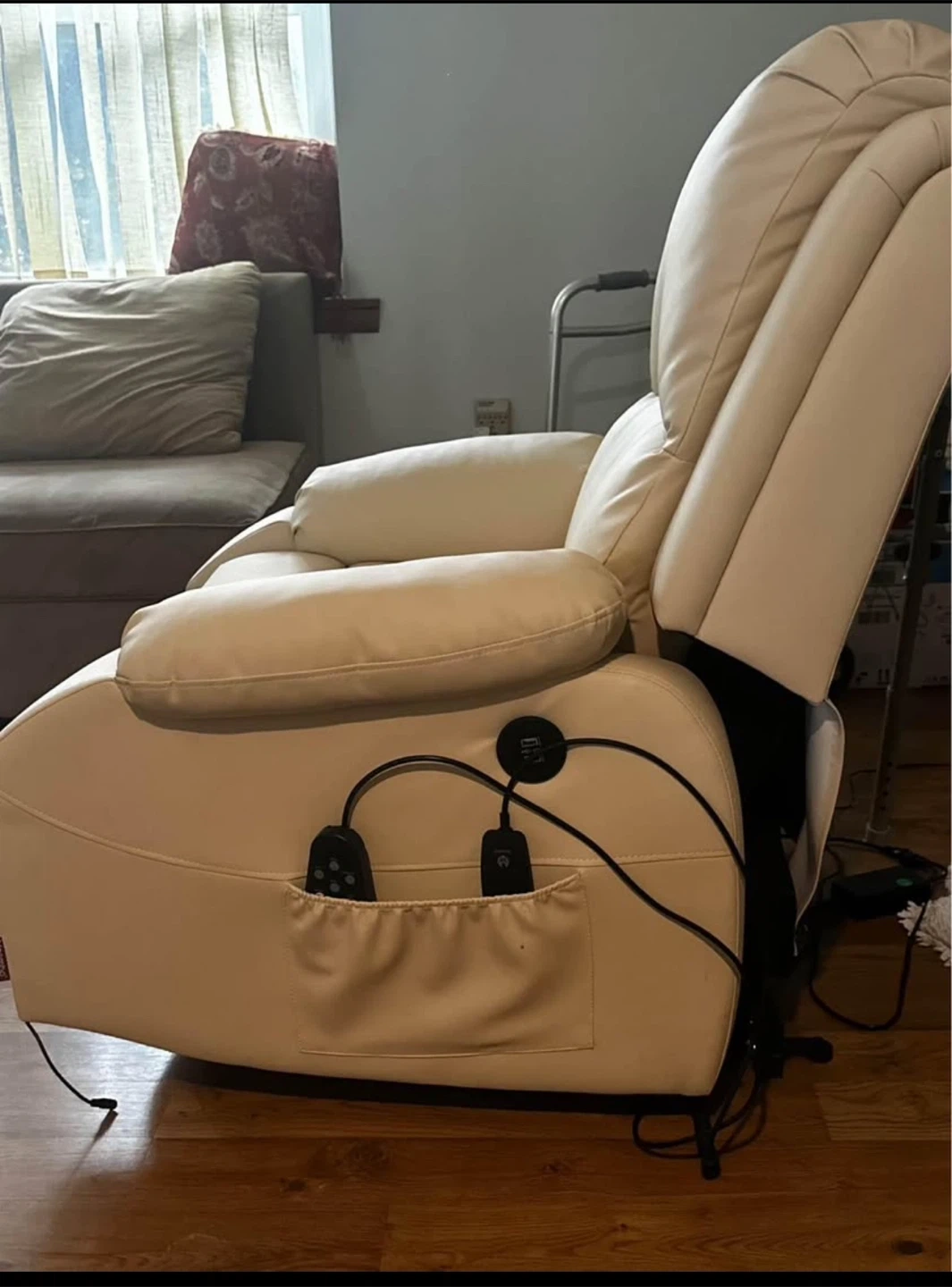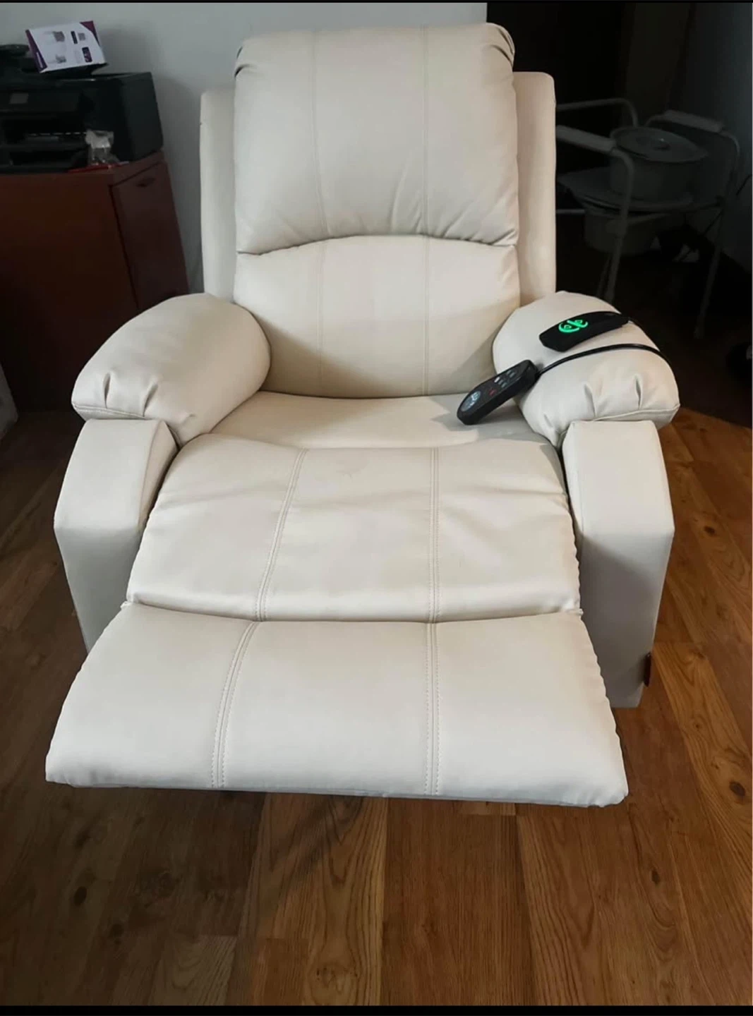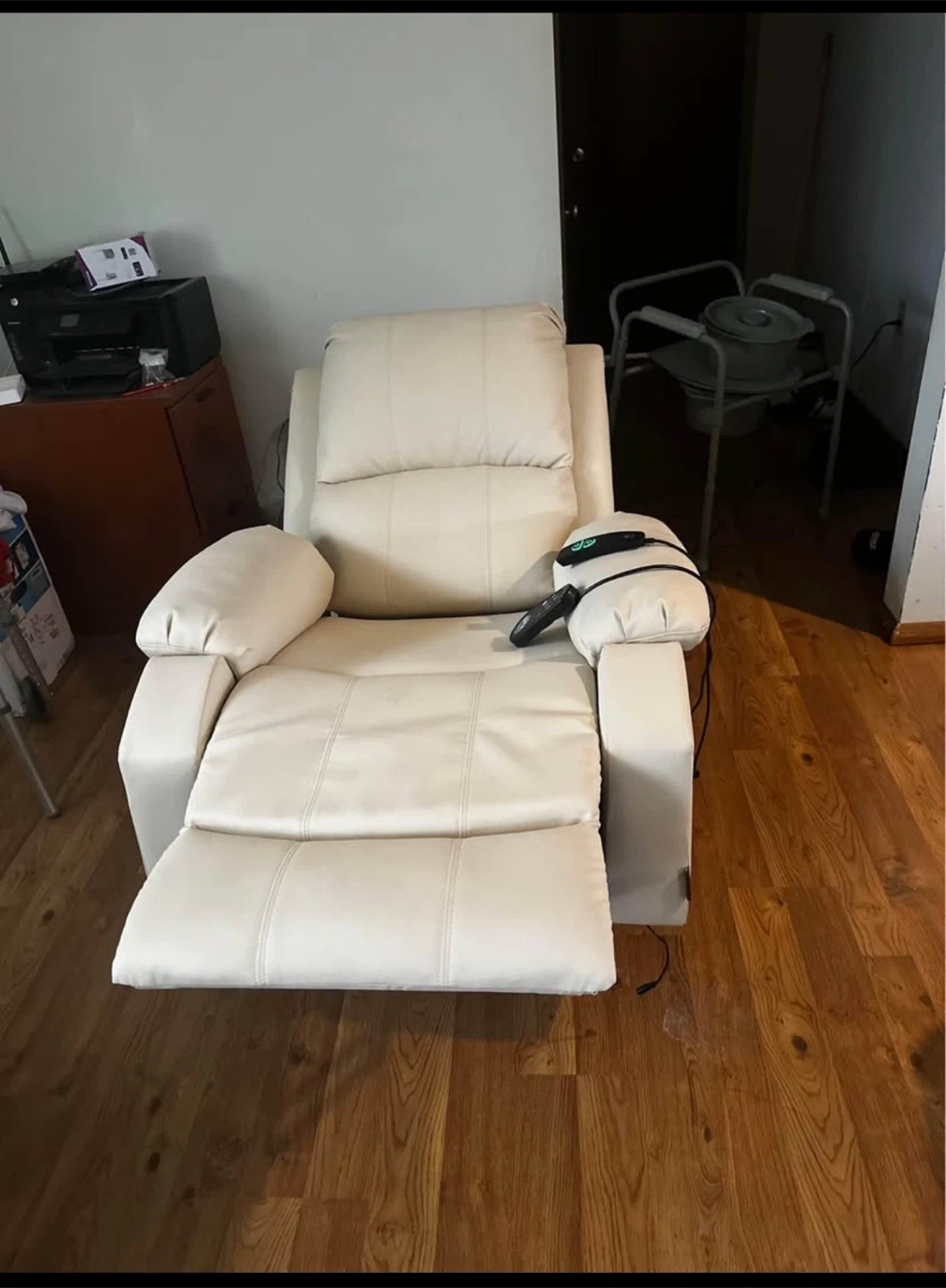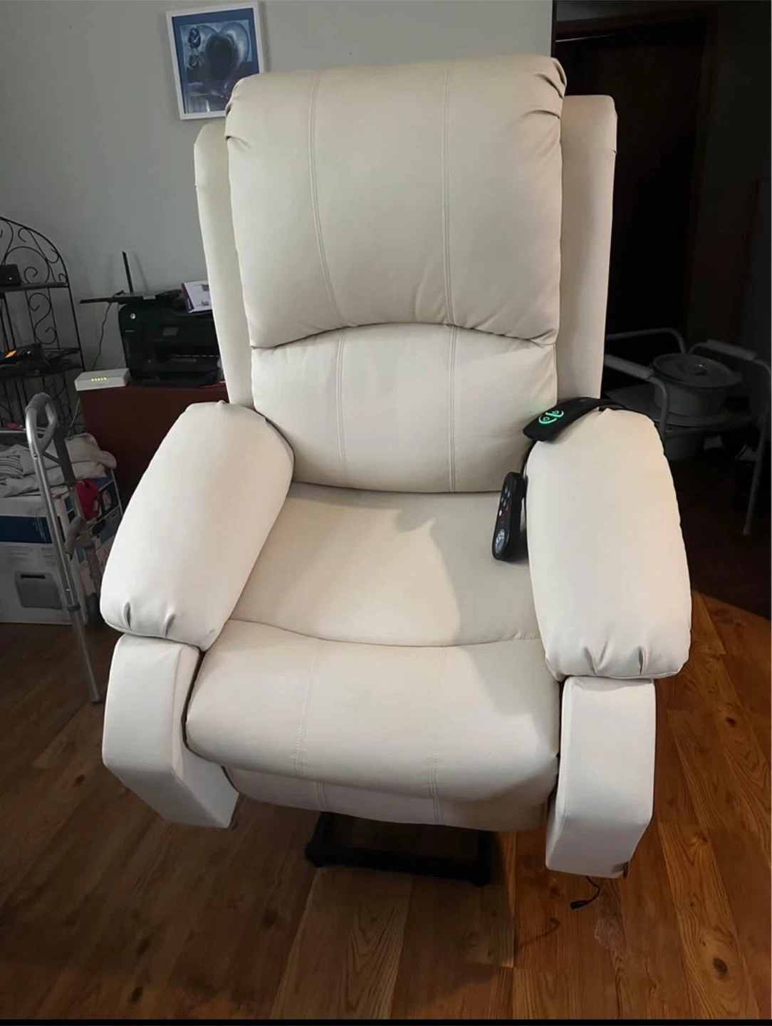 10Selling a comfortable cream-colored powerlift electric recliner chair. Great condition!! Like new!! My mom used it a handful of times and then was bedridden. It comes with a remote control and heat / massage options