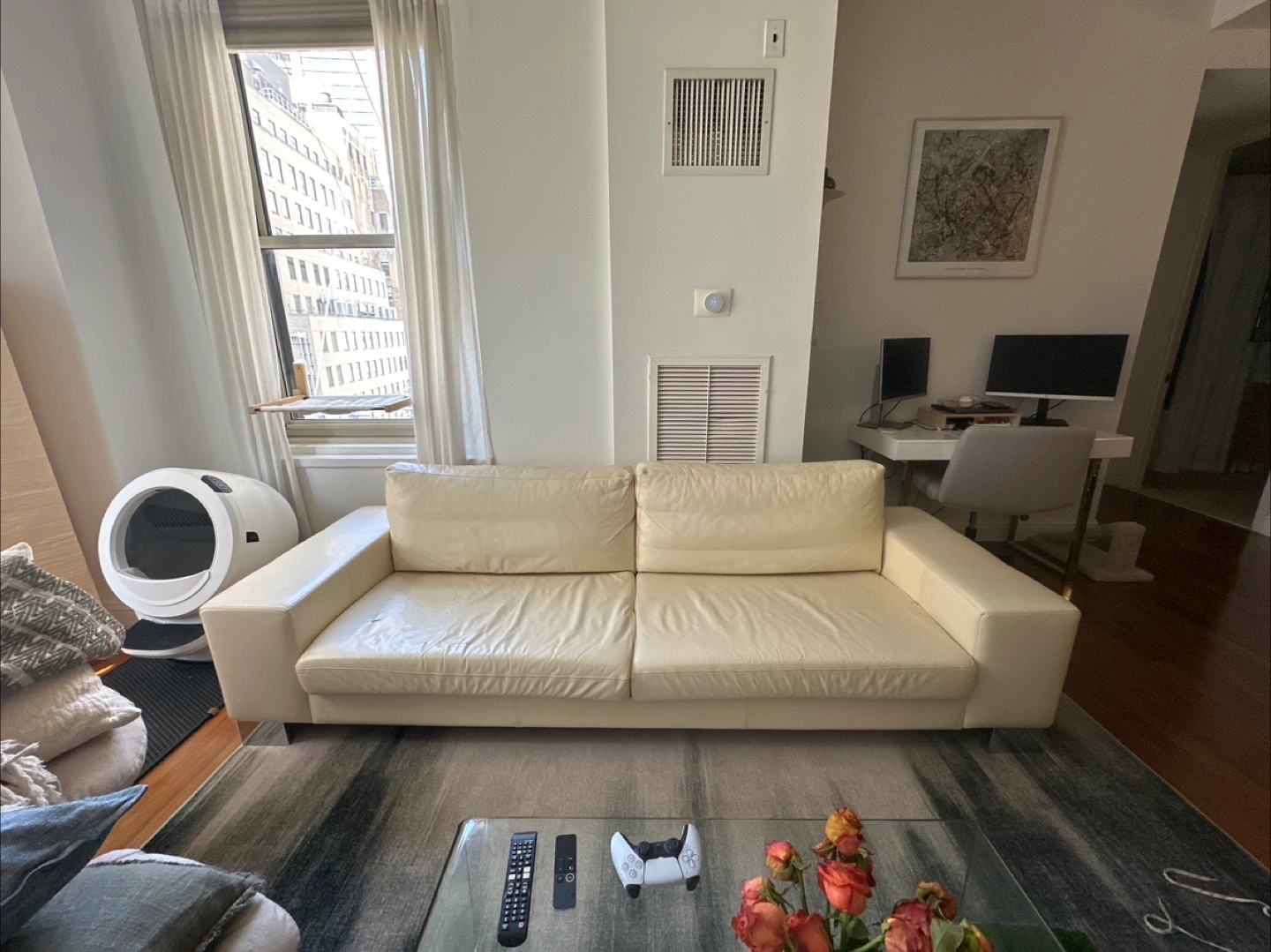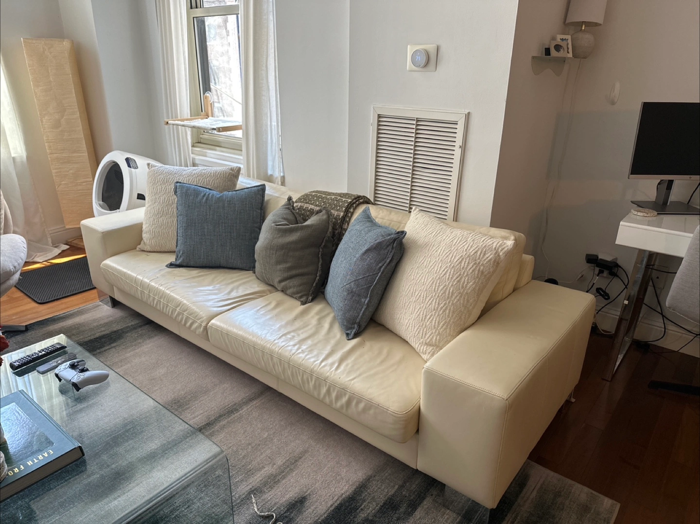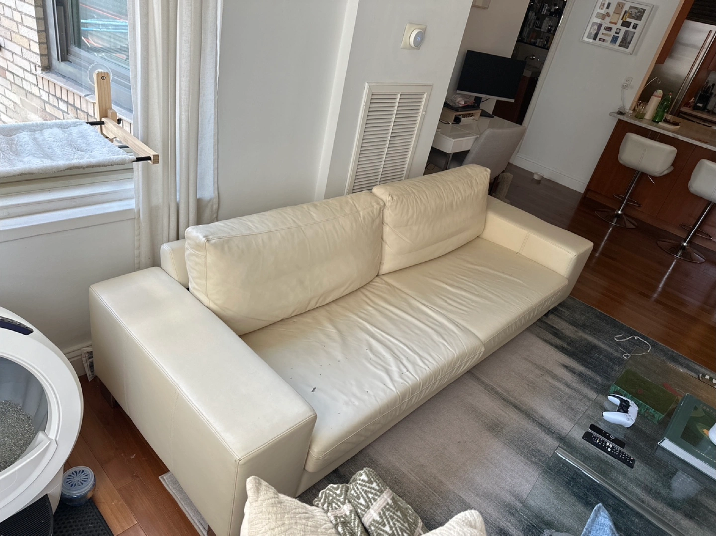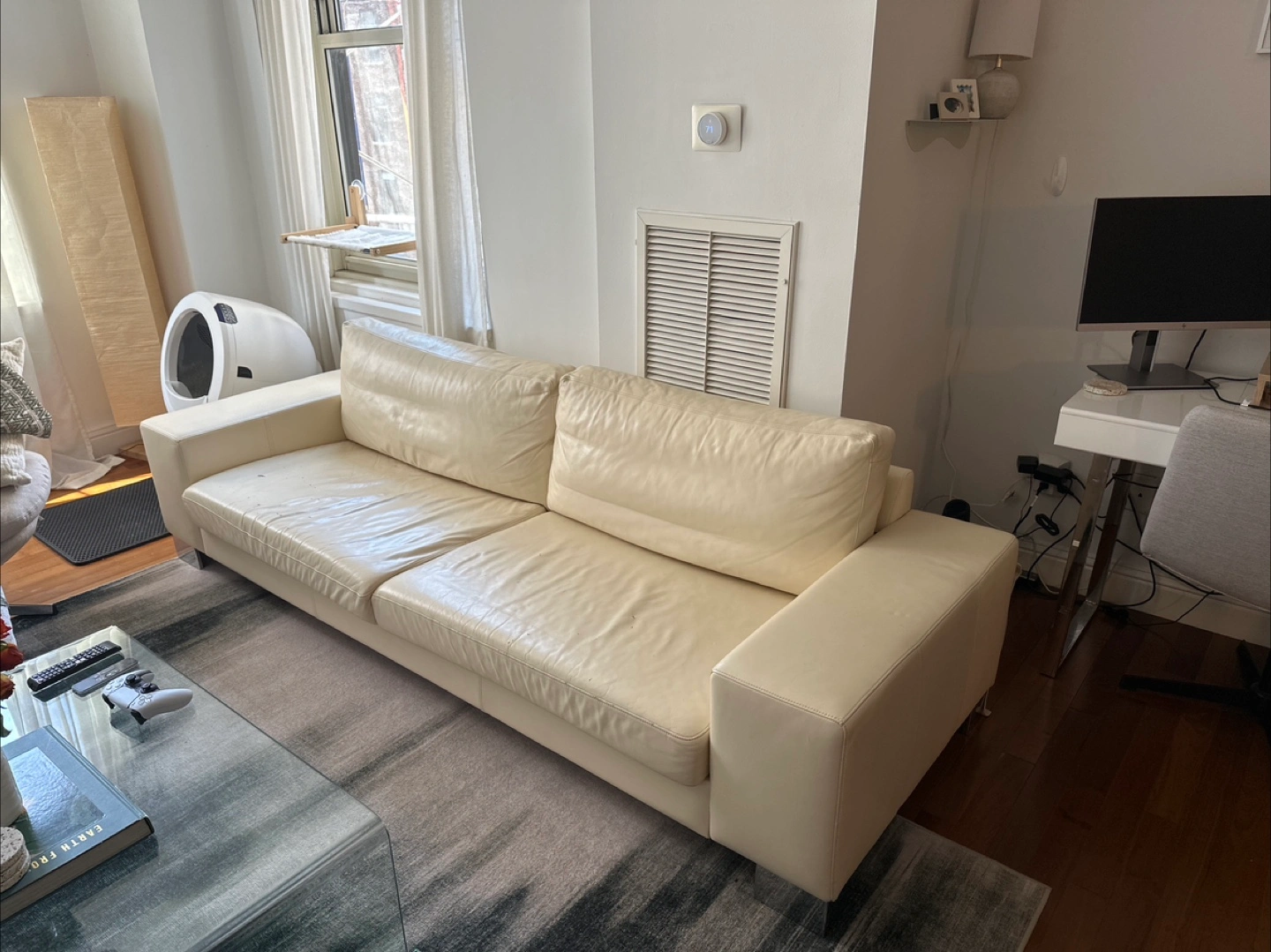 Selling a vintage cream-colored genuine leather sofa. Charming piece great for any living room! Some minor imperfections, but can easily be fixed! Please reach out if you have any other questions!
