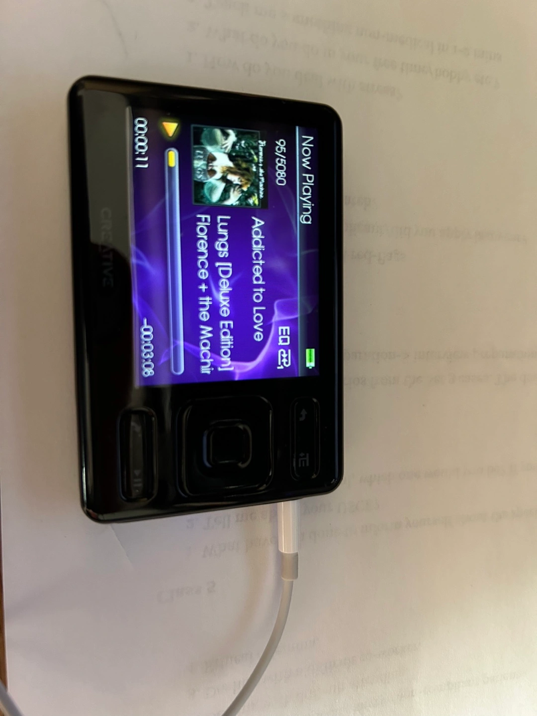Don't pay for music monthly subscription, store your music in this MP3 player. ๐ I have about 5,000+ preloaded music. See the long list of Album names on the pixs. I have 3 Audio Books Feed (Zombies), Ascension (Star Wars) and Twilight (vampires) CASH Only, local pick up in Queens, NYC. Best inquiry, best served (OR best offer). CASH & Carry only. For pick-up in Jackson Heights, Queens near Travers Park. thanks, Arlene Enjoy all your media on a device that's about the width of a credit card Watch 64 hours of videos, enjoy up to 8,000 of your favorite songs or share hundreds of photos with your friends 2.5-inch TFT color display with 320 x 240-pixel resolution and support for up to 16.7 million colors Clock and alarm function, volume restriction, eight equalizer settings, and a USB hard drive mode, SDHC support Weighs 2.1 ounces and measures 3.26 x 2.16 x .44 inches (W x H x D) A razor sharp 2.5-inch display makes your photos and videos come to life. See the Zen in detail. Small size. Big features. All in the palm of your hand. Video of Creative Zen, showing that it works: https://youtu.be/x4YMCDCg81c?si=Qff1tEL-tKQcEmfe Add even more storage capacity via the SD card slot. View larger. Design The Zen sports a 2.5-inch TFT color display with 320 x 240-pixel resolution and support for up to 16.7 million colors. This razor sharp display is packaged in a device that weighs just 2.1 ounces and measures 3.26 x 2.16 x .44 inches (W x H x D). The internal battery powers the Zen for up to 25 hours of continuous audio playback and up to five hours of continuous video playback. Use the Zen's SD slot to expand your portable media library with music, photos and videos stored on your SD card. There's also a handy built-in microphone for capturing notes on the go. Features: Load up up your favorite songs, as well as your album art, and get going with the Zen. The device supports iTunes Plus tracks from the iTunes store and MP3 and WMA tracks. Subscription and pay-per-download music services are supported, as well. Discover, save, and play millions of songs when subscribing to services such as Yahoo Music Unlimited and Napster To Go. You can even tune into your favorite stations with the Zen's FM radio. The radio allows you to save up to 34 presets. The Zen has you covered when it comes to video, too. The device supports MJPEG, WMV9 and--with transcoding--MPEG1 and 2, MPEG4-SP, DivX 4 and 5, and XviD. Enjoy purchased or rented movies and TV shows from online services such as Amazon Unbox and Walmart.com. Watch home videos. Even load your Tivo To Go movies and TV shows onto your Zen. Additional features include a clock and alarm function, volume restriction, eight equalizer settings, and a USB hard drive mode, which allows you to drag and drop files directly to and from your Zen. The Zen can also function as a handy organizer, allowing you to synchronize with Microsoft Outlook and display your contacts, calendar, and tasks.