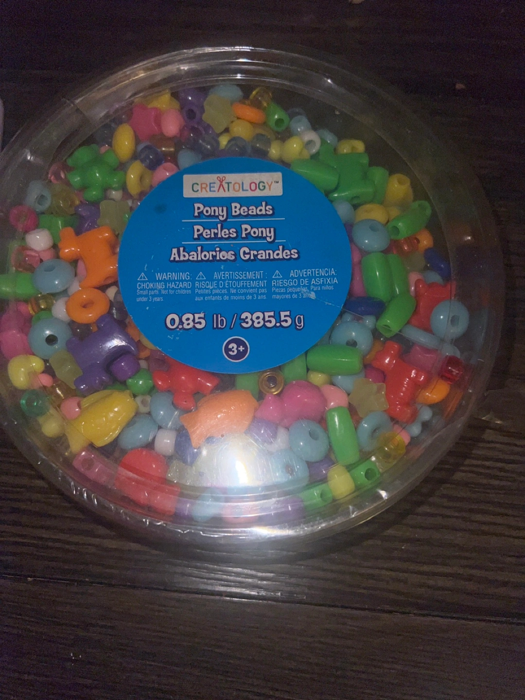 1000+Creatology Pony Beads. Colorful pony beads. Variety of shapes and colors. Great for crafting. Made in China. 3+.