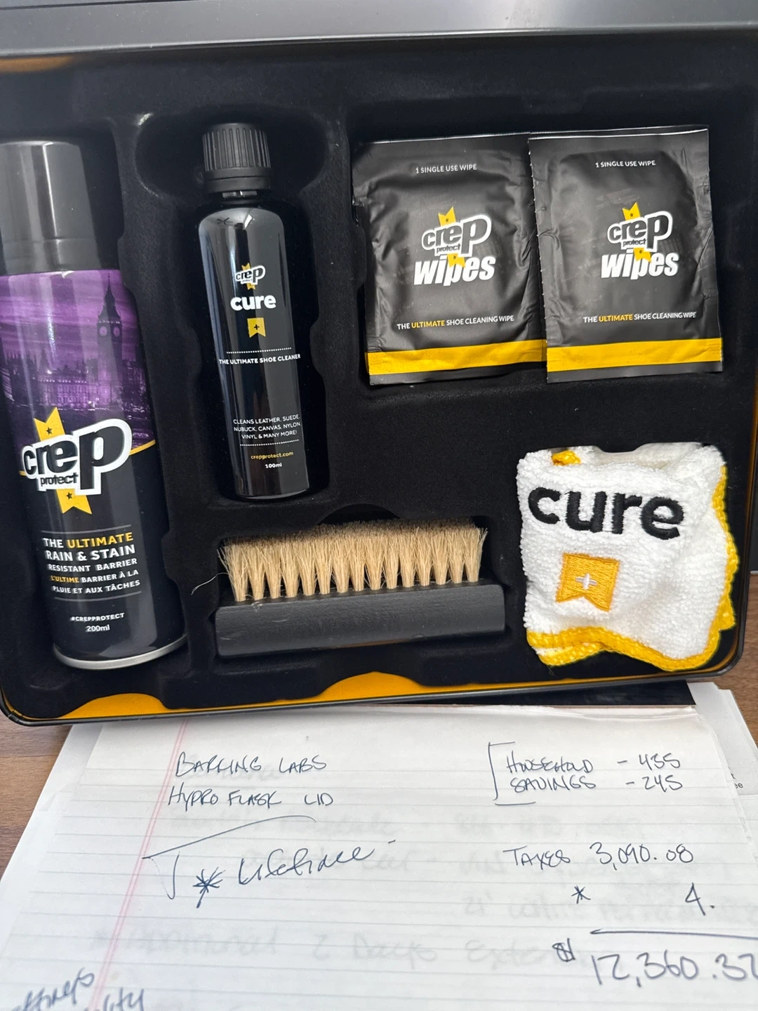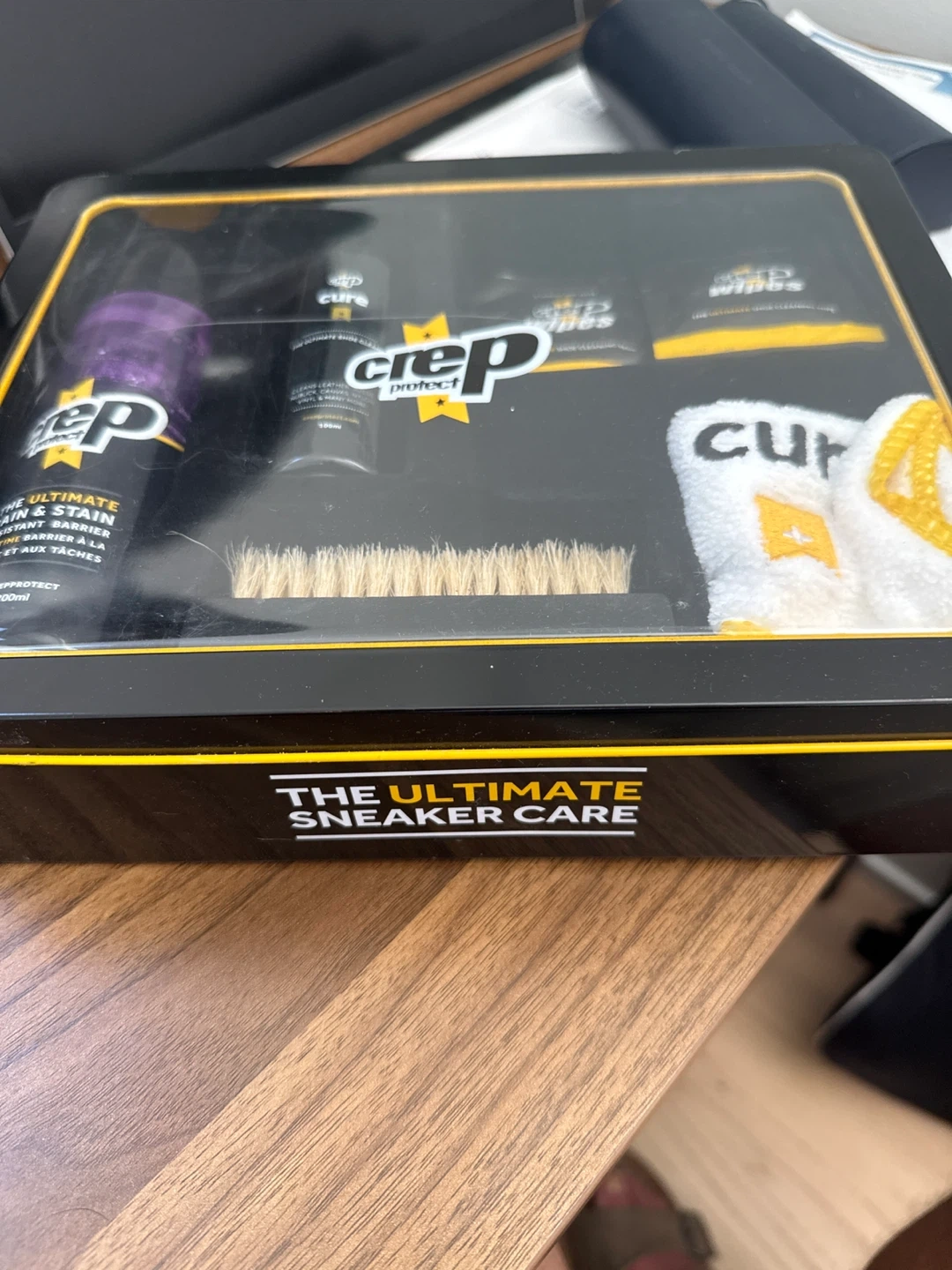 Brand new- never used. Keep your sneakers looking fresh with the Crep Protect Ultimate Sneaker Care Kit! This kit has everything you need to clean and protect your favorite shoes. The kit includes: - Crep Protect Spray (200ml) - Crep Protect Cure Cleaner (100ml) - Crep Protect Wipes (2 single-use wipes) - Brush - Microfiber Cloth