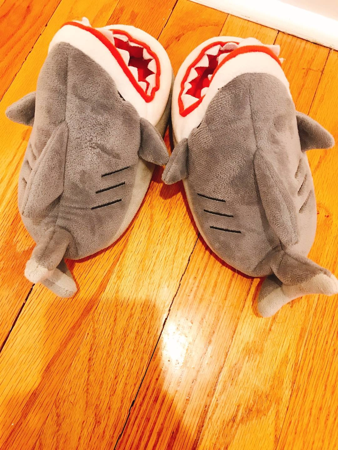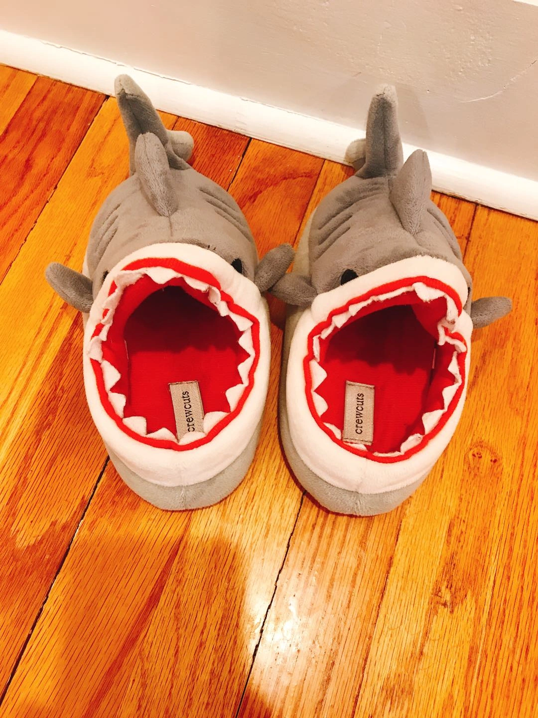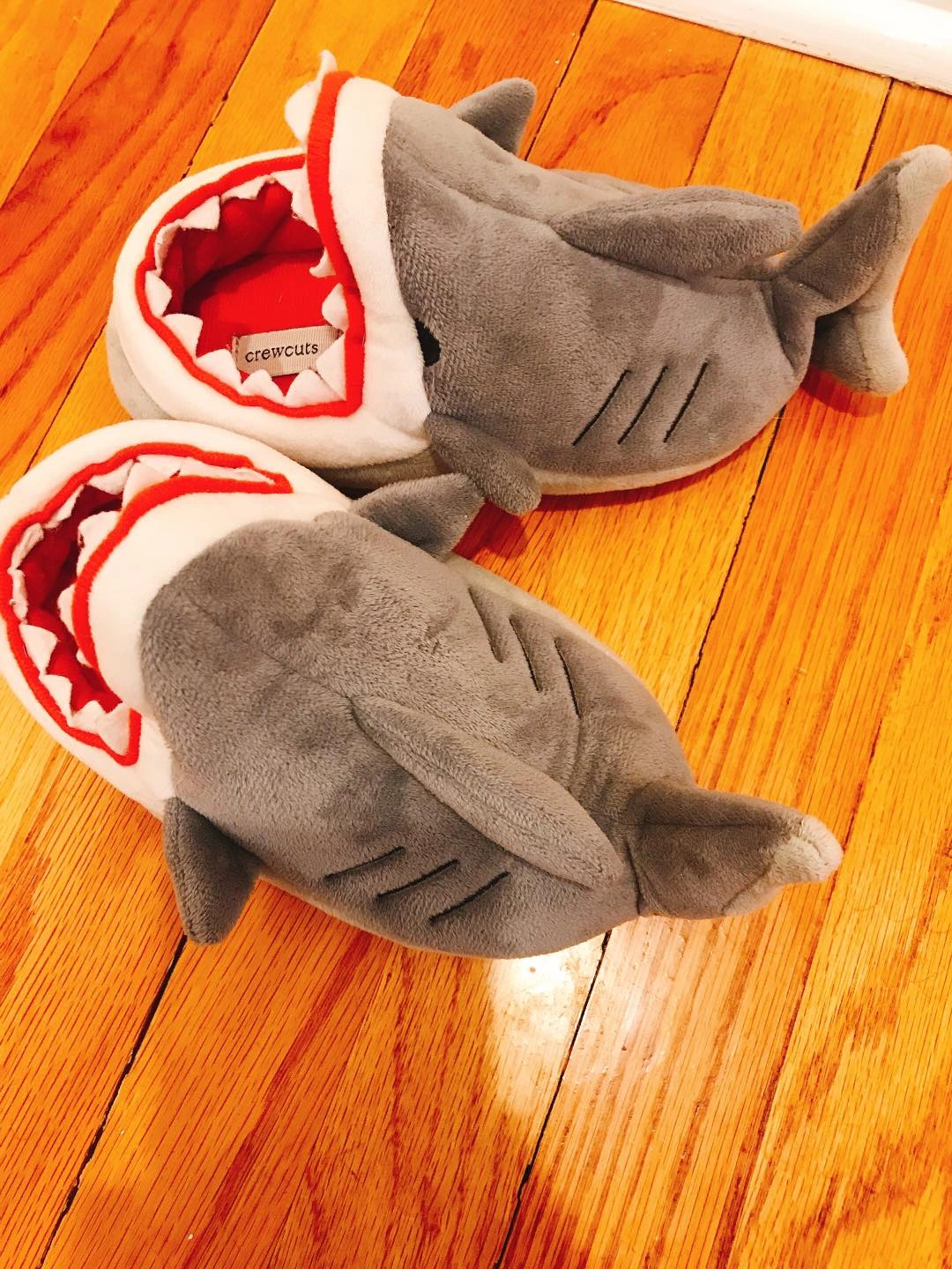 crewcuts by J.Crew Shark Slipper Size : K13 These are great quality; soft with nice, sturdy bottom. These funny, fuzzy slippers are perfect for the kid who wishes it could be shark week every week.