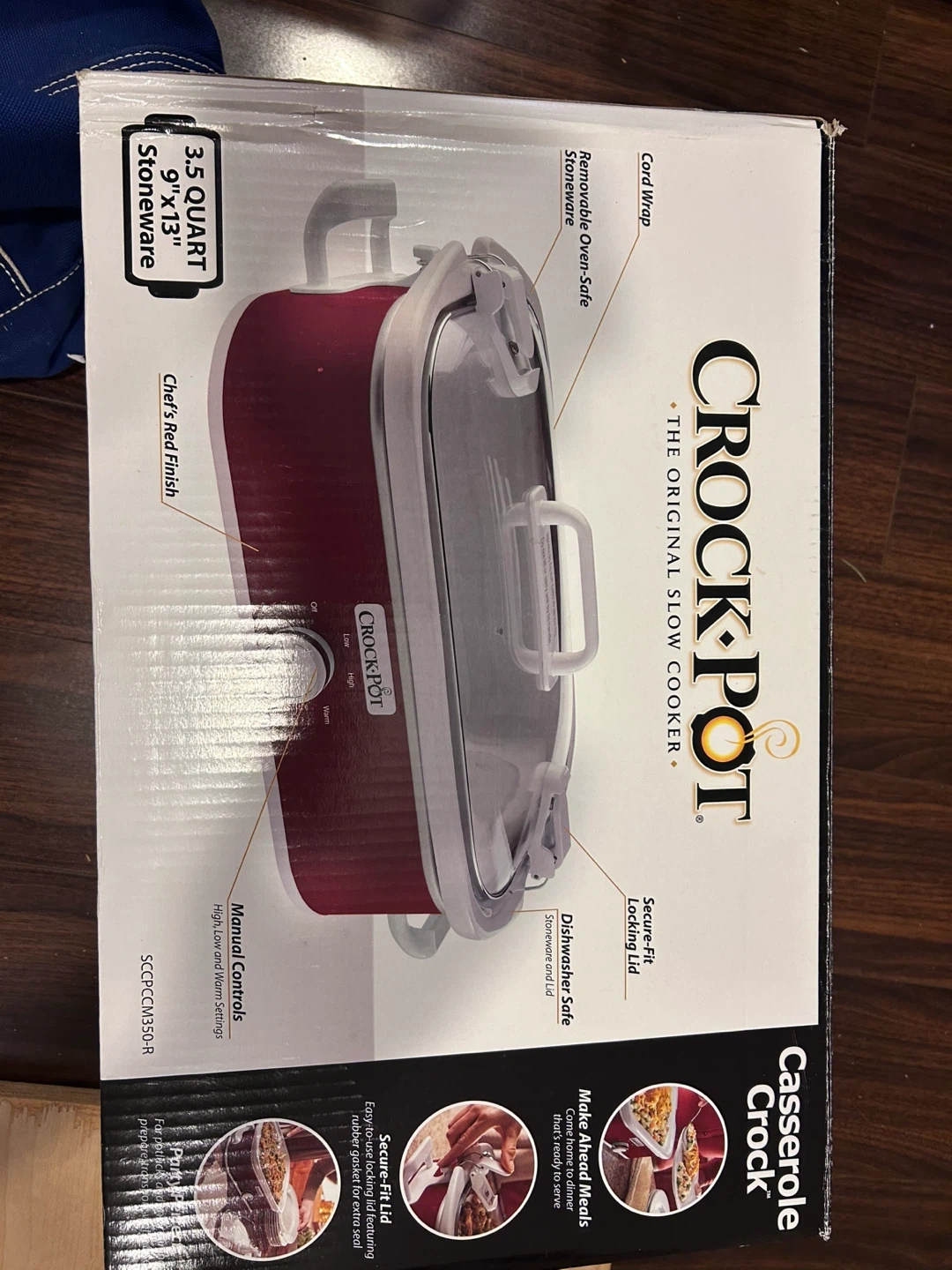 10Selling a brand new Crock-Pot Casserole Crock! It's a 3.5 quart stoneware slow cooker, perfect for casseroles and more. It features a Chef's Red finish and manual controls with high, low, and warm settings. The removable oven-safe stoneware is 9" x 13". The box is included! Paid 115
