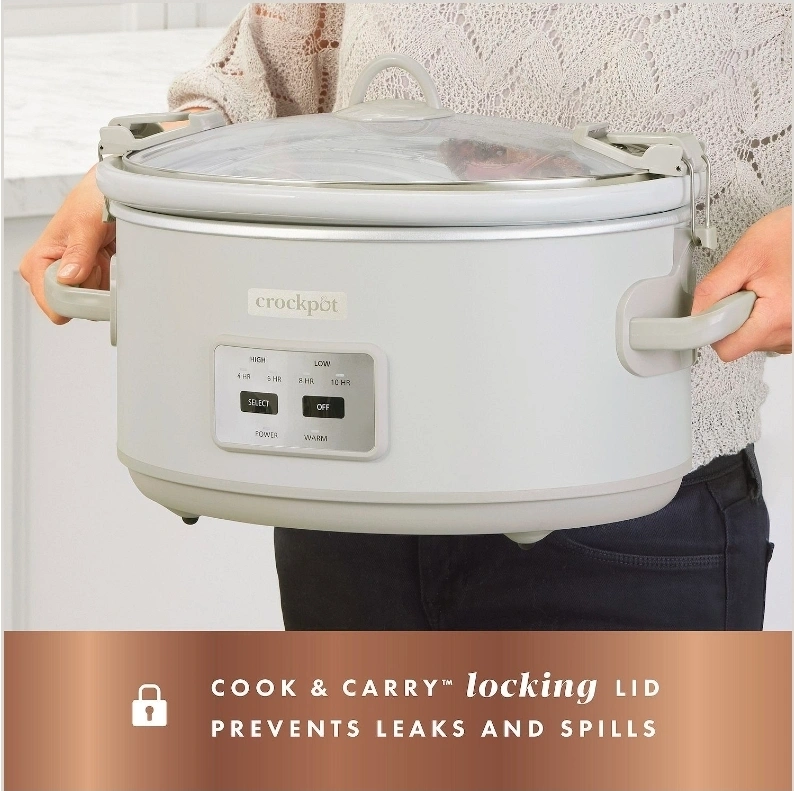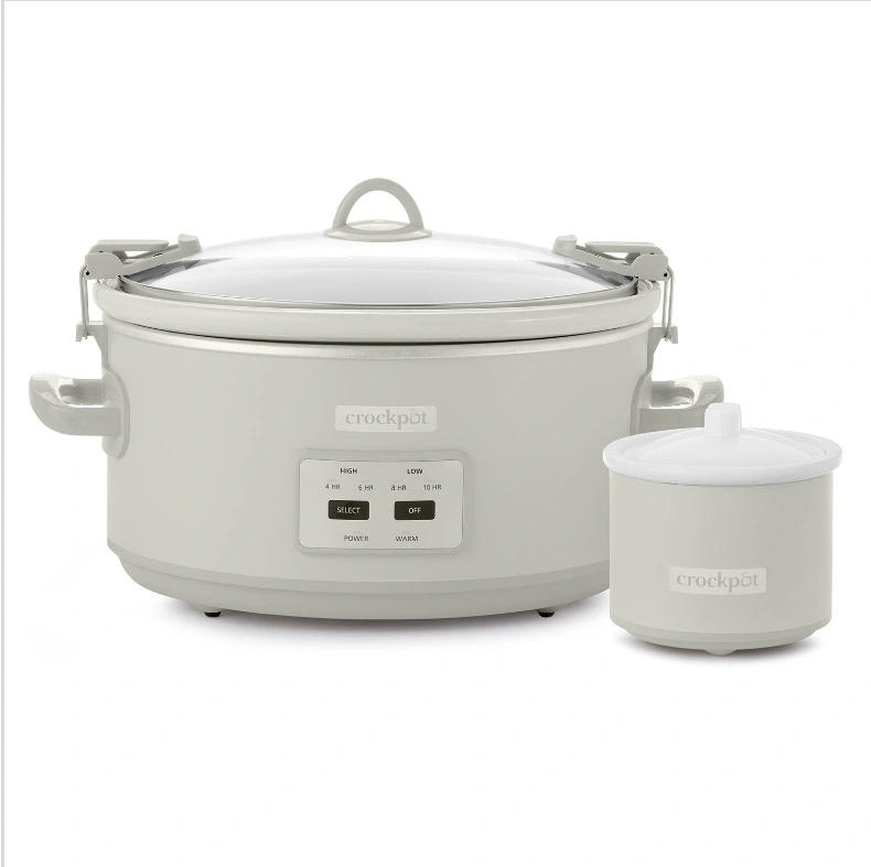 81I'm selling a Crockpot Cook & Carry Slow Cooker in a lovely matte mushroom color! It features a locking lid to prevent leaks and spills, plus three programmable heat settings: high, low, and warm. It also comes with a bonus Little Dipper warmer, perfect for dips and sauces