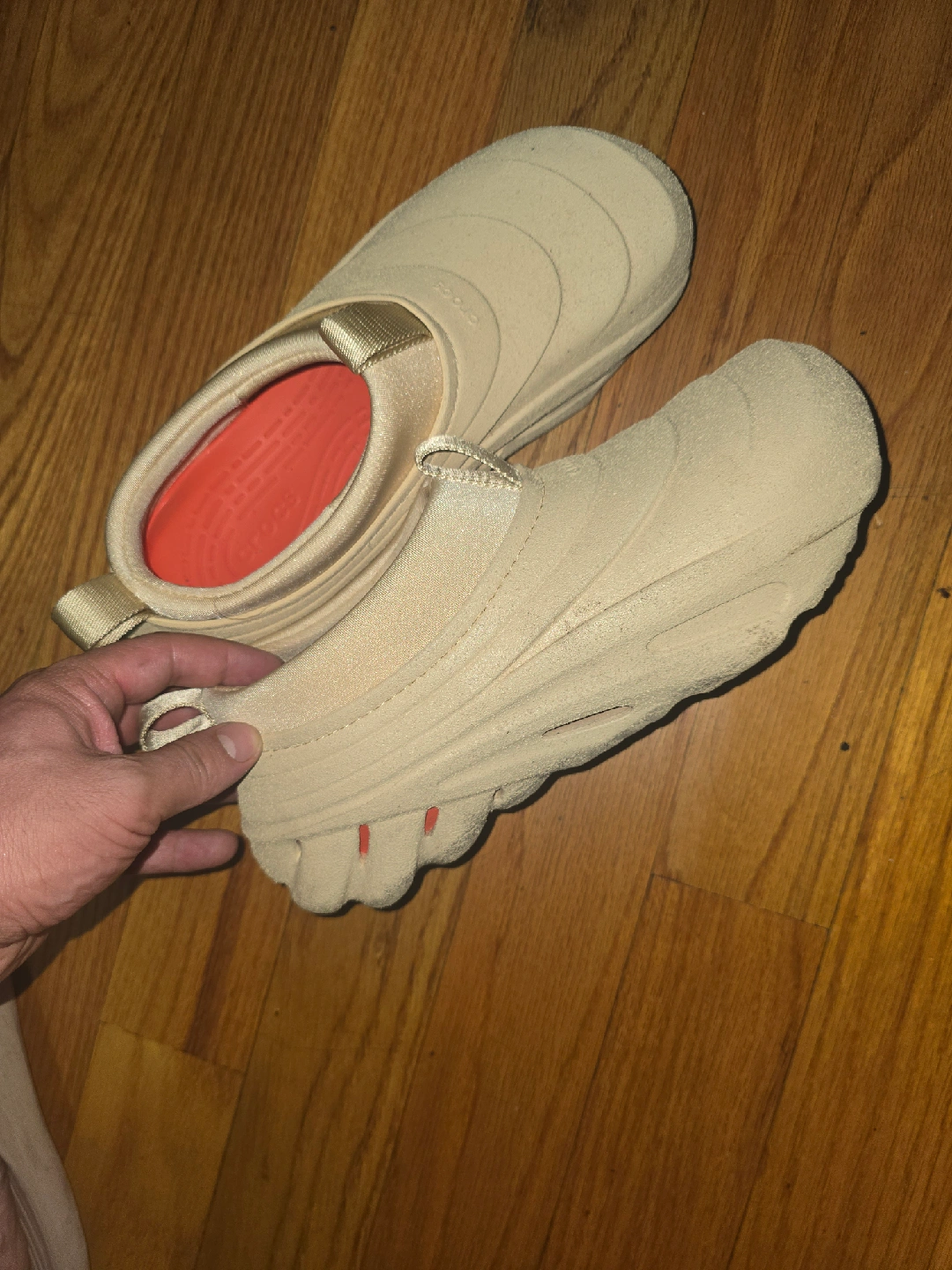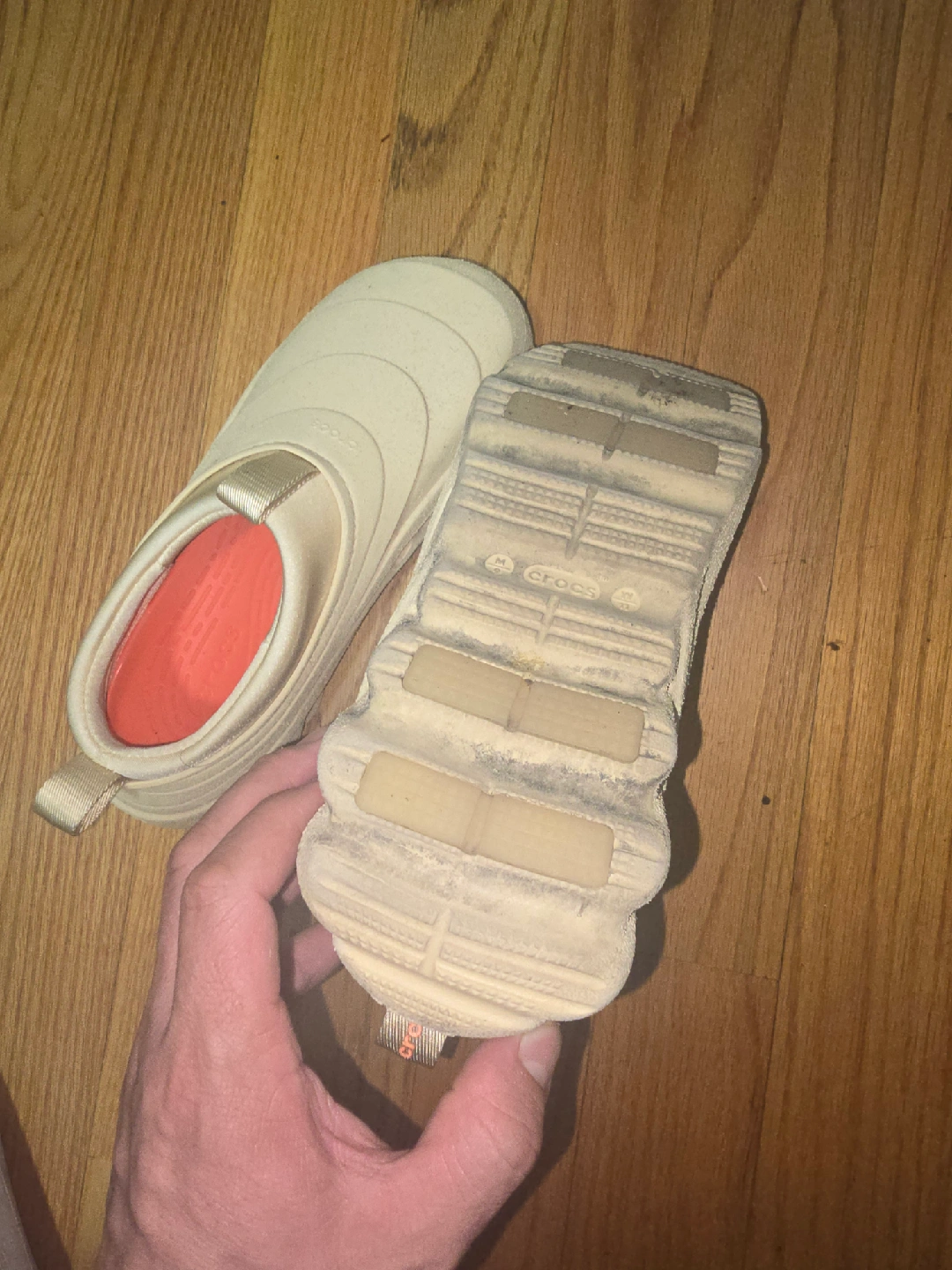 I am selling my Crocs, they are brand new, worn only once, I don't have the box, they are size 9.5M, but would fit someone 10M.