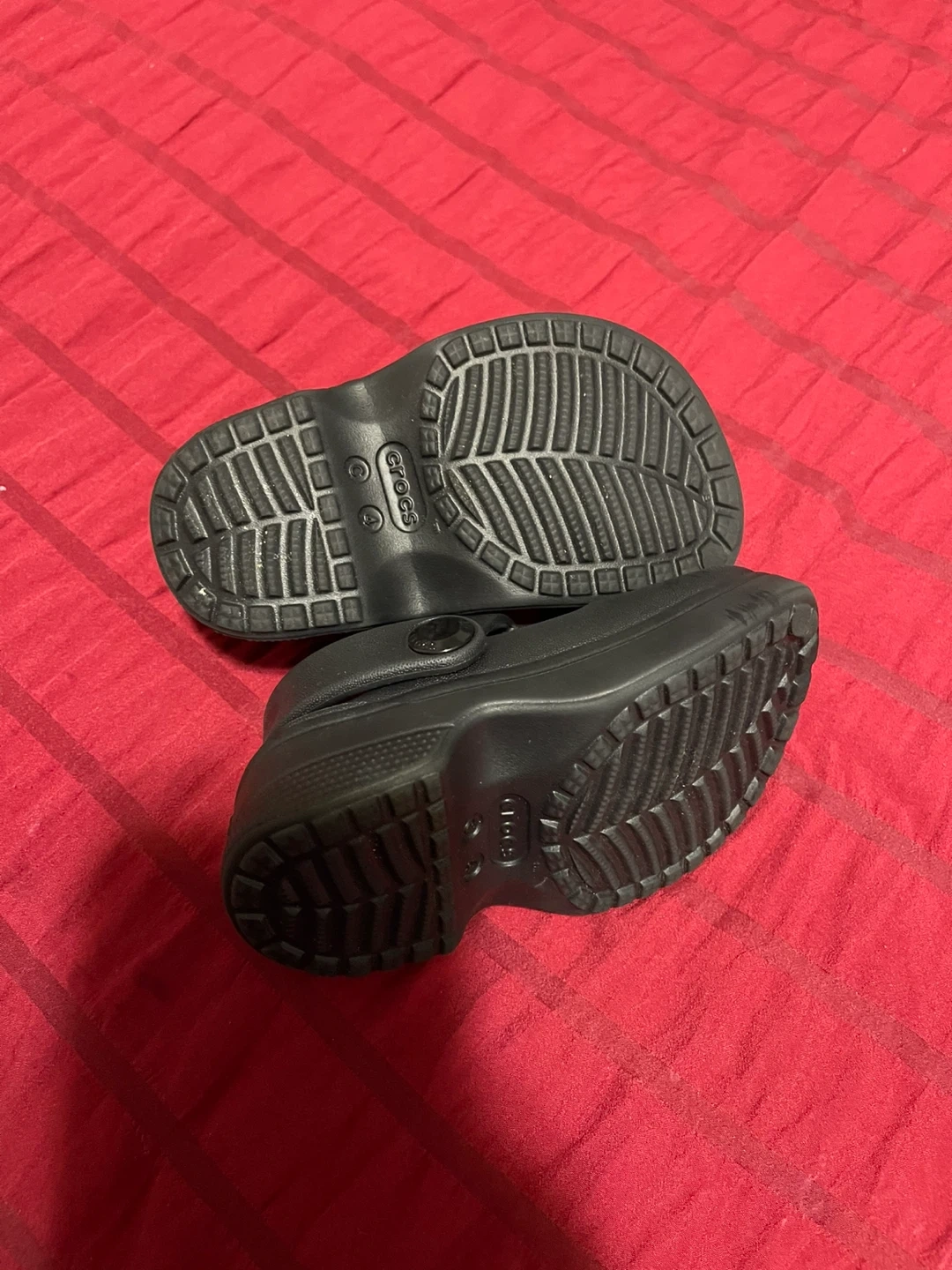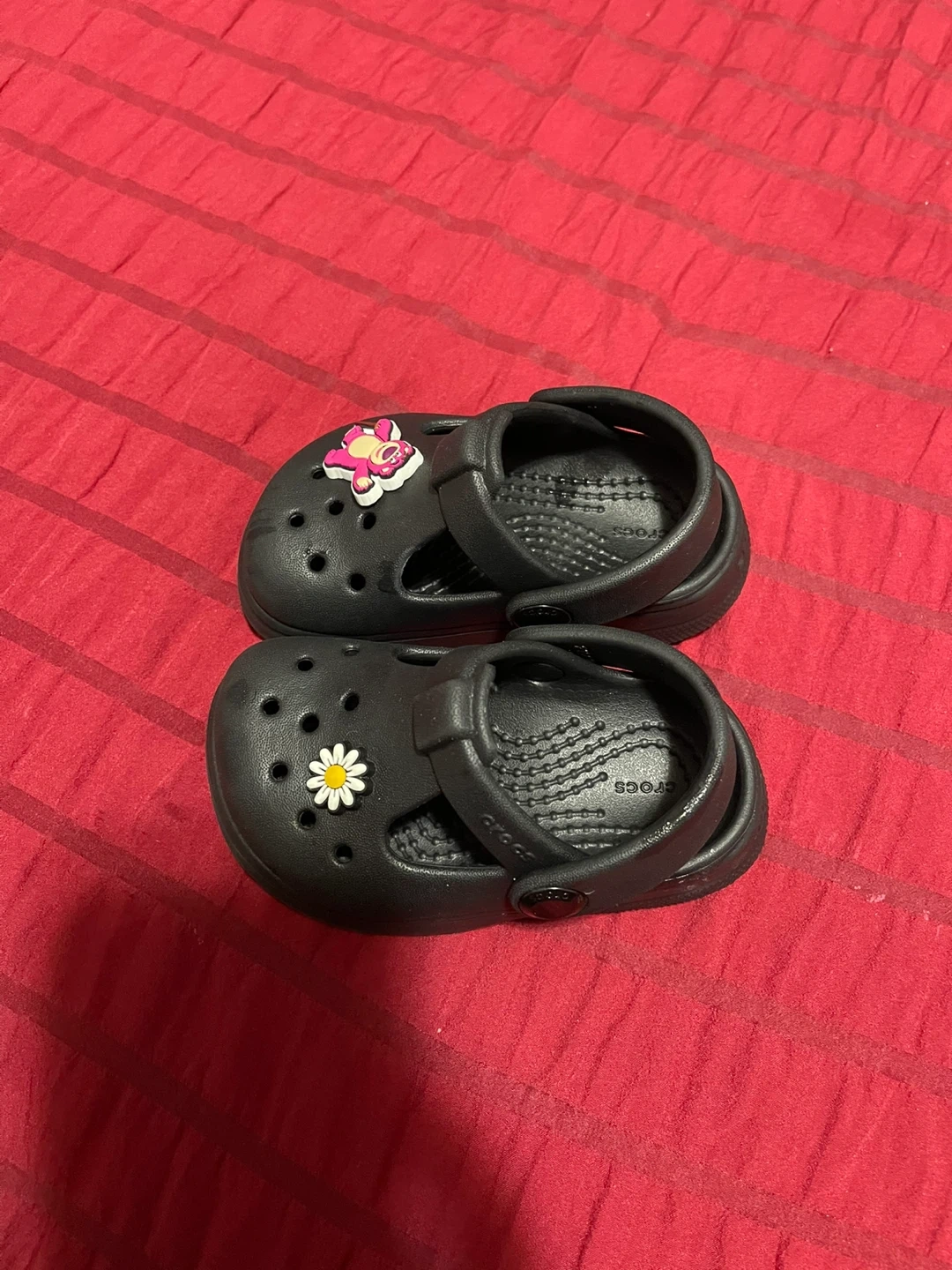 67Selling a pair of black Crocs kids' clogs in size 4. They have cute flower decorations! These are in great condition and ready for a new home