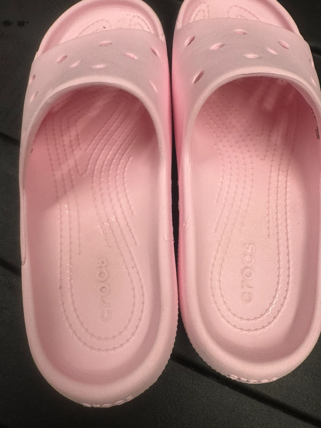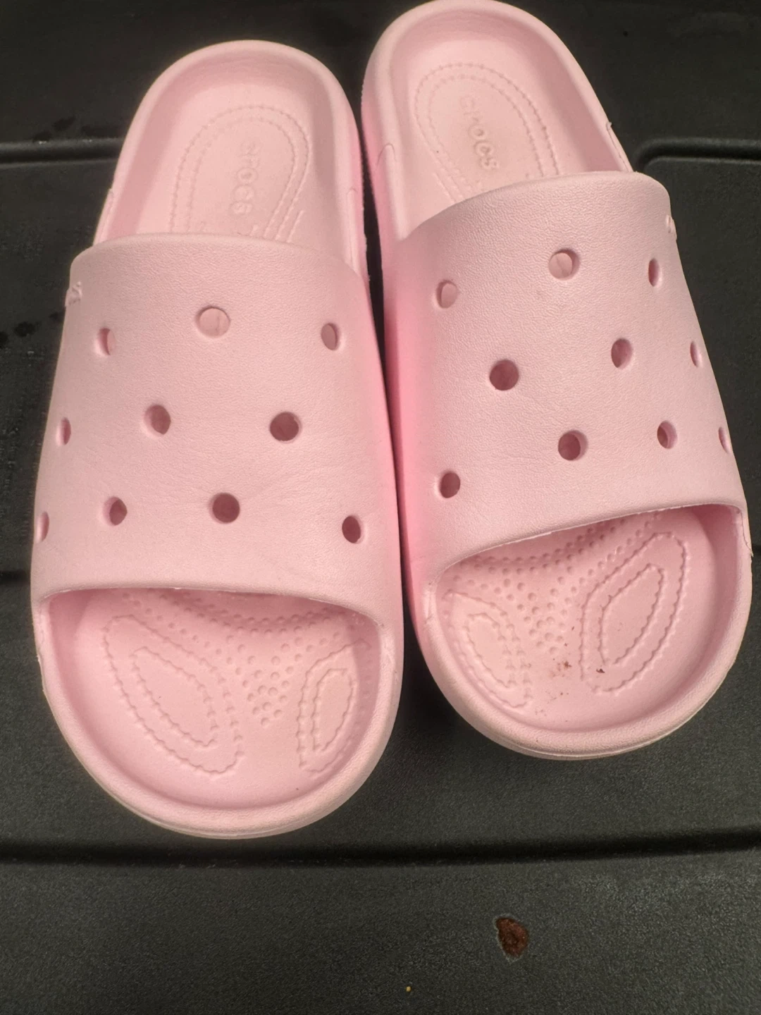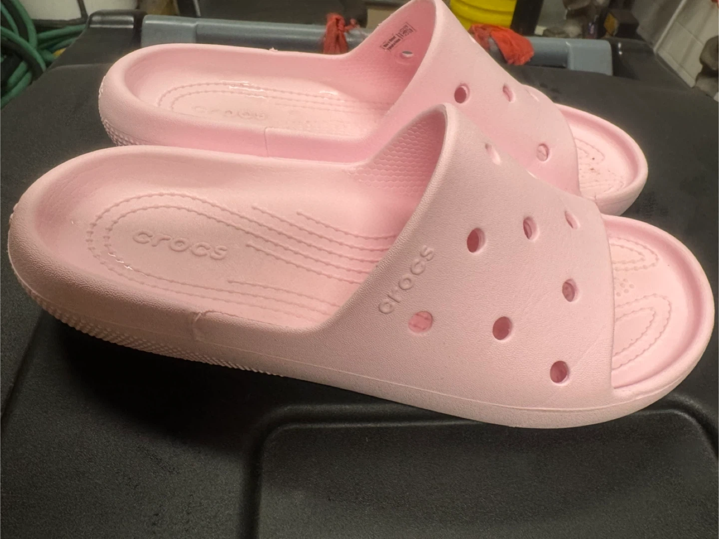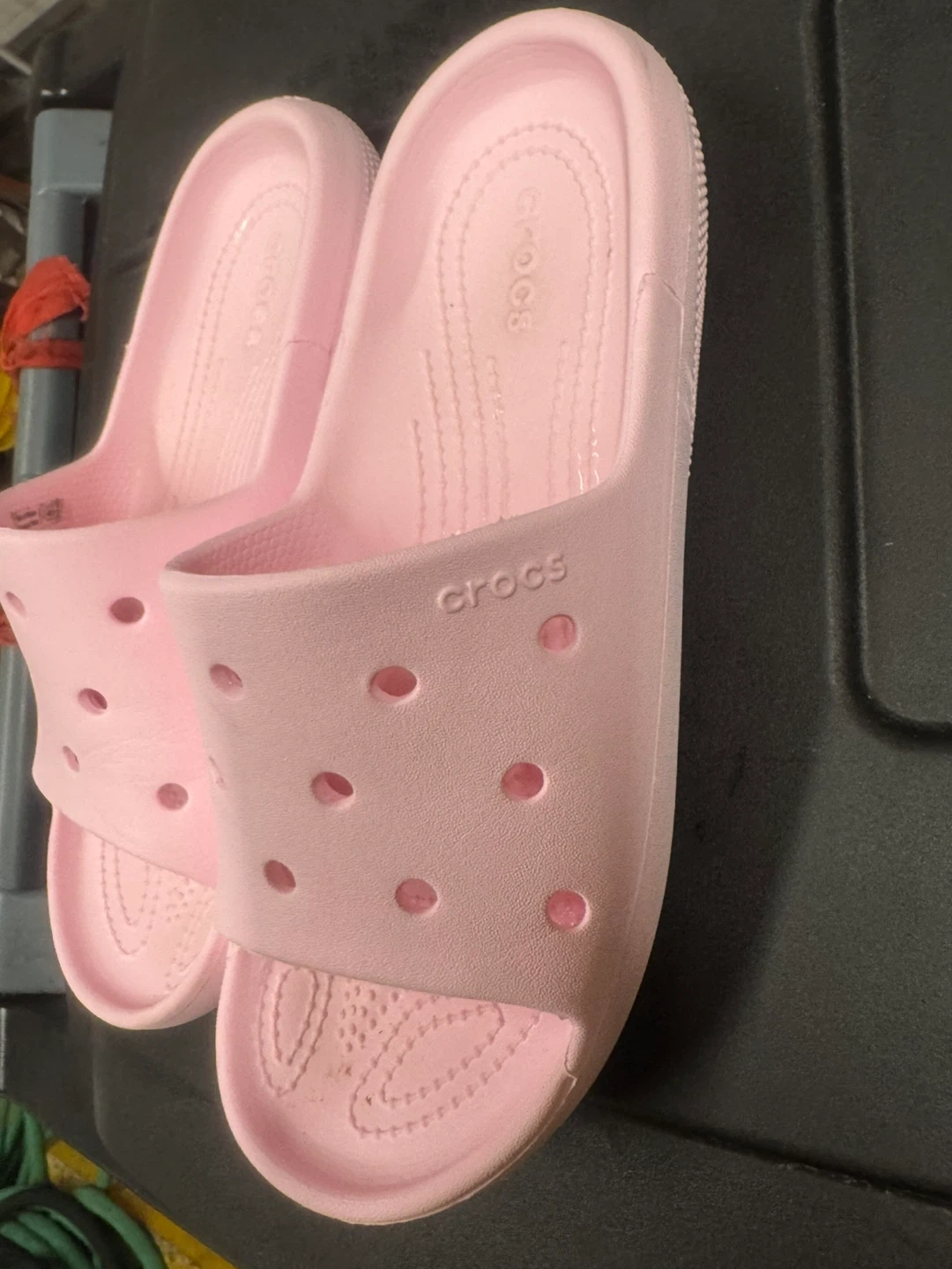 65Cute pink Crocs slides in a women's size 6! They're in good condition and ready for a new home