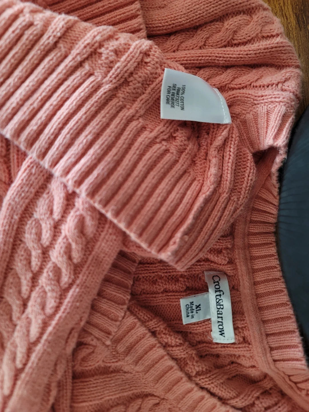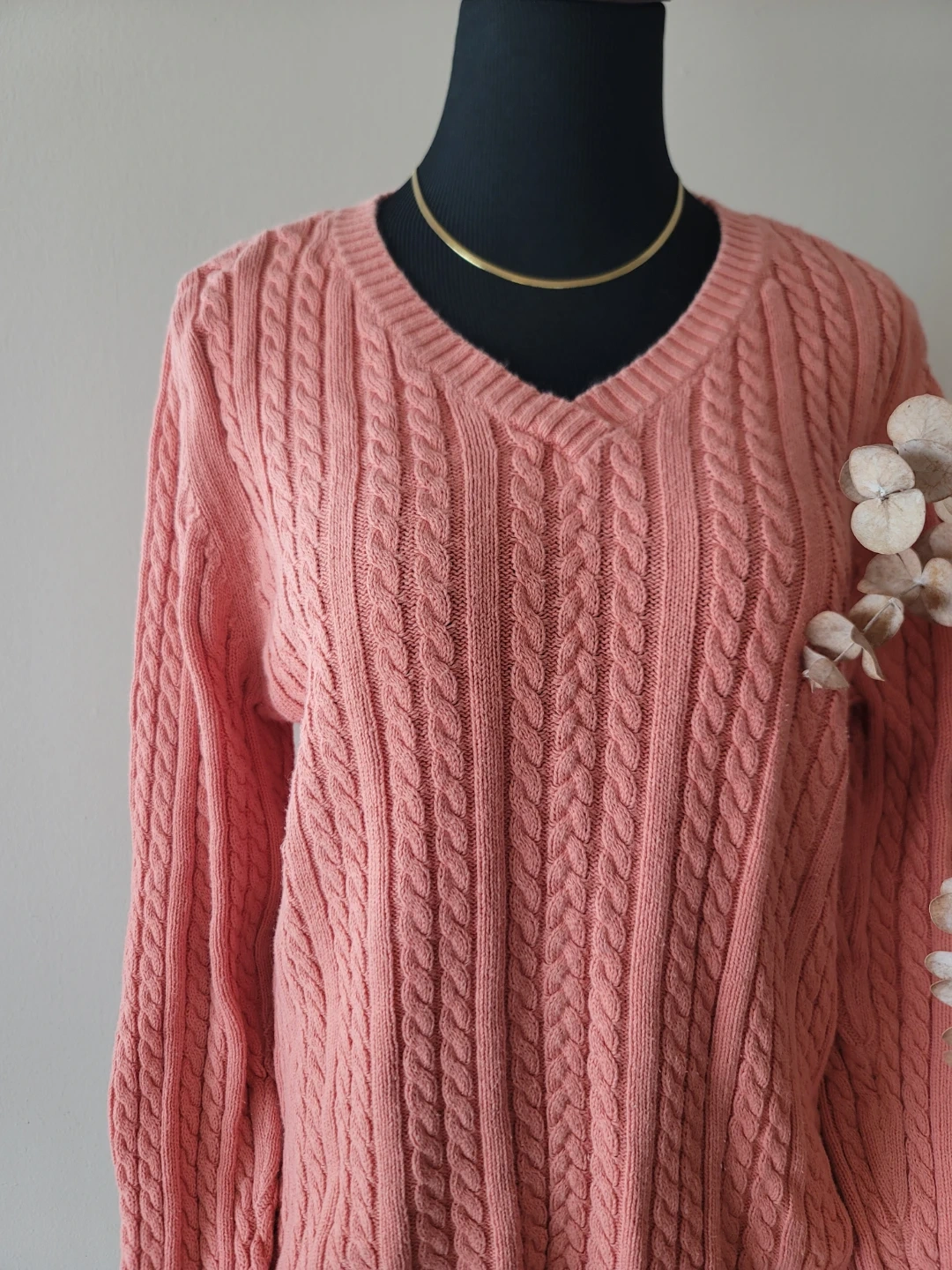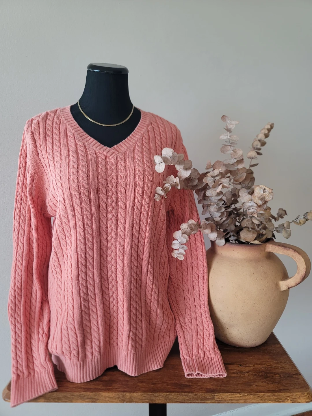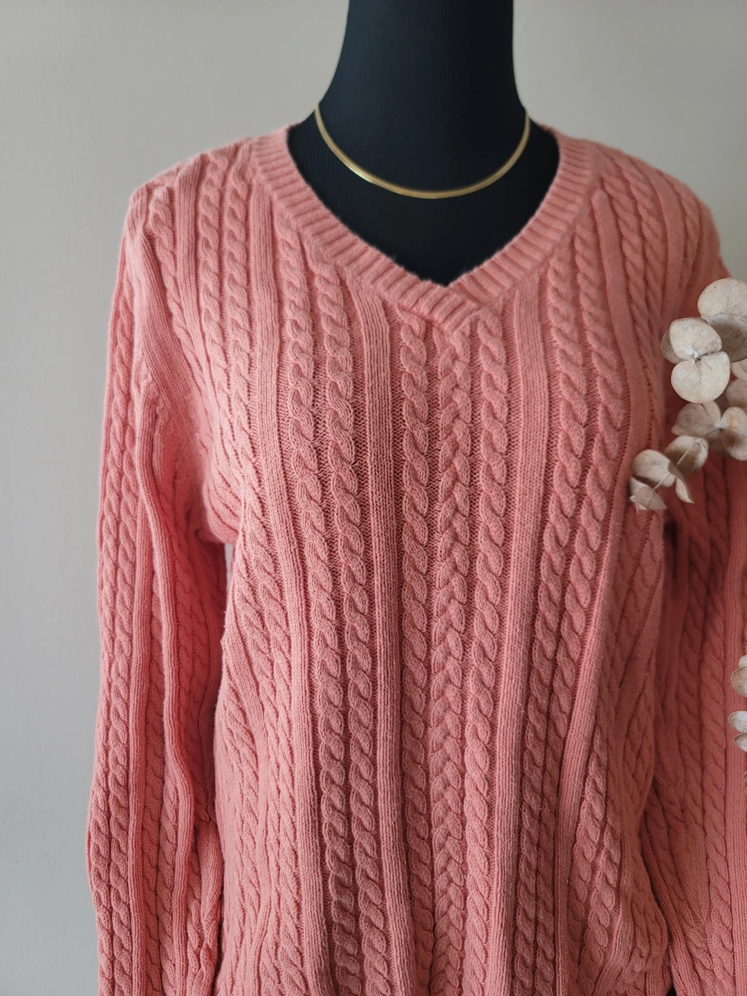 60Selling a Croft & Barrow cable knit sweater in size XL It's a lovely pink color Made of 100% cotton Chic pink/ coral sweater with a classic cable knit design. V-neck style for versatile wear. Soft and comfortable fabric. #cotton #cable #cableknit #coral #fall #winter #spring #layers #cottage #boho #contemporary #y2k #minimalism #businesscasual #preppy #collegiate #college #office #work