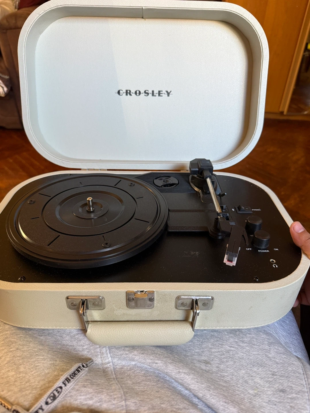 Selling a Crosley record player in a cream color! It's in great condition and comes in its original carrying case. Perfect for playing your favorite vinyls!
