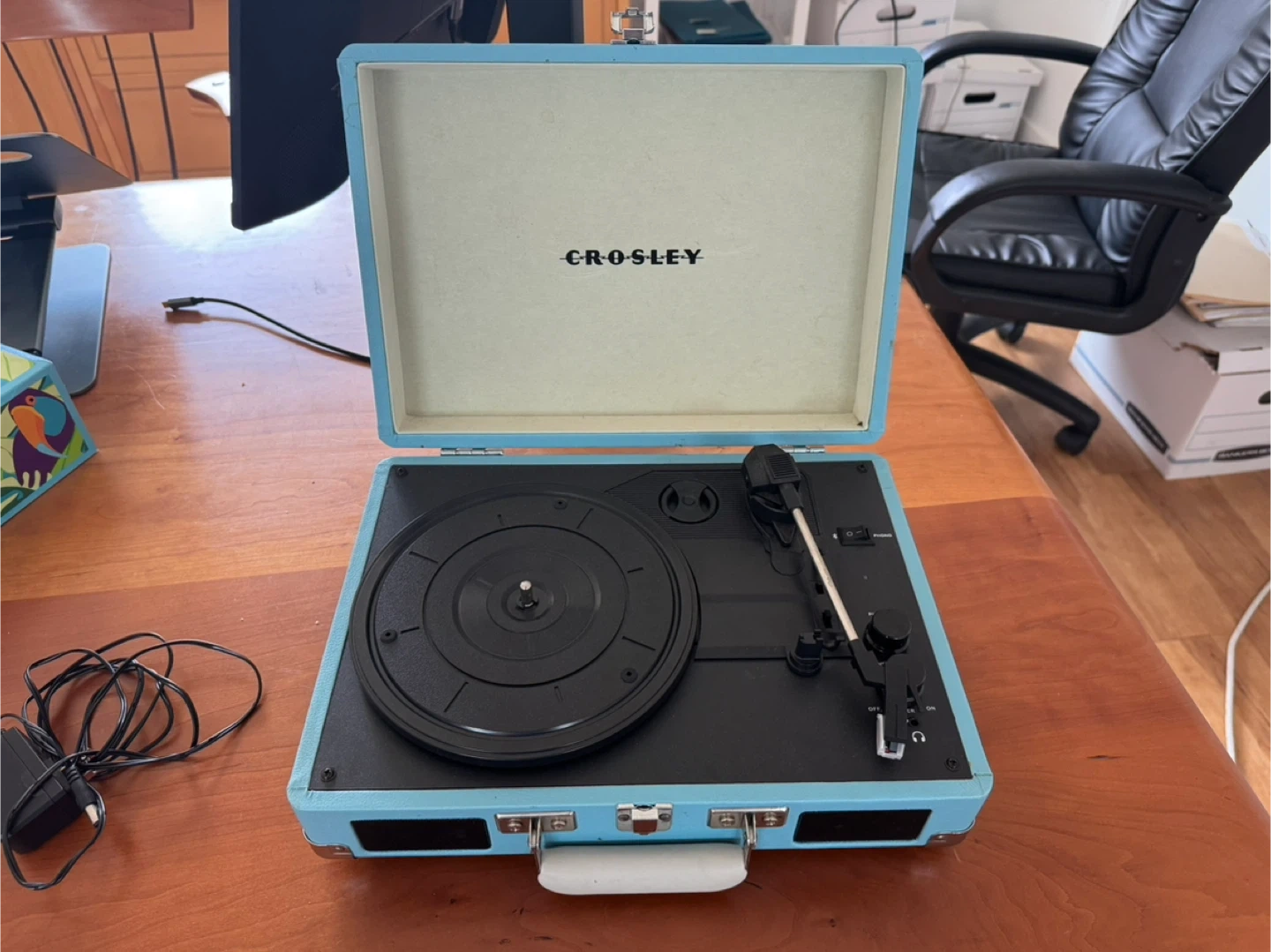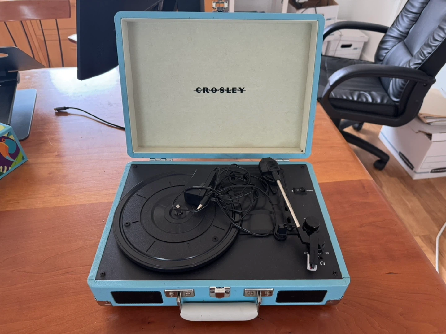 5Selling a Crosley Cruiser turntable in a light blue color! It's in good condition and ready to play your favorite vinyl records. The turntable is portable and has a built-in speaker, making it perfect for taking your music on the go. It's a fun and stylish way to enjoy your vinyl collection!