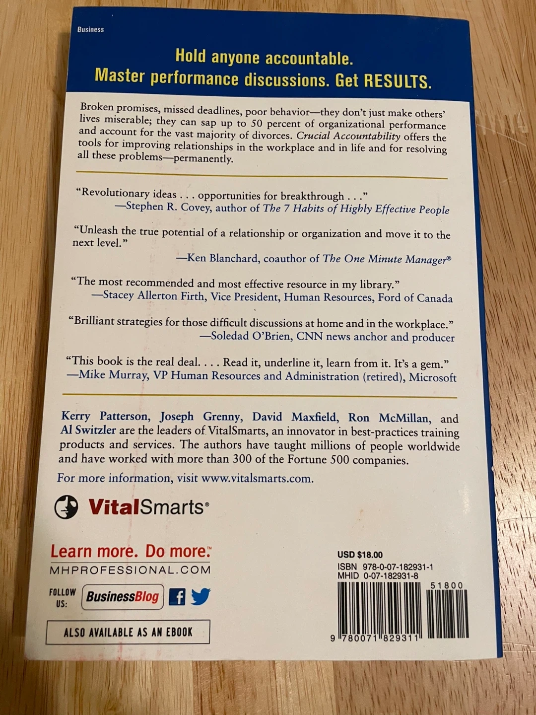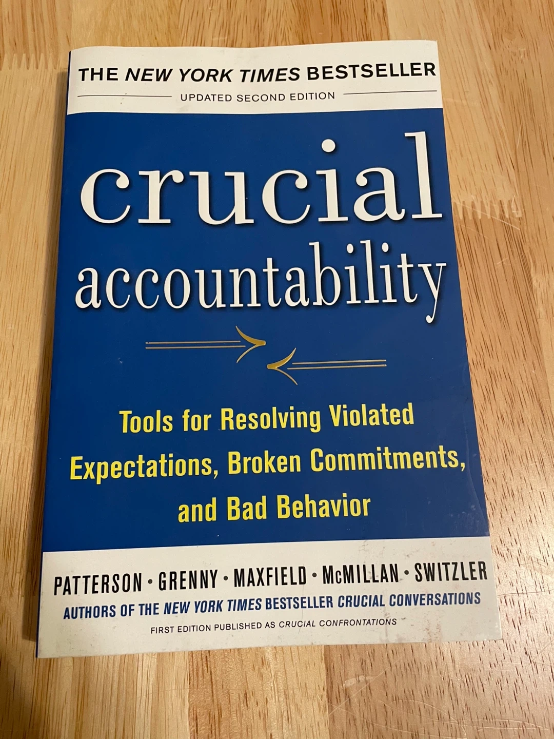 Selling "Crucial Accountability: Tools for Resolving Violated Expectations, Broken Commitments, and Bad Behavior" by Patterson, Grenny, Maxfield, McMillan, and Switzler. This is the updated second edition and a New York Times Bestseller! Great for improving relationships in the workplace and in life