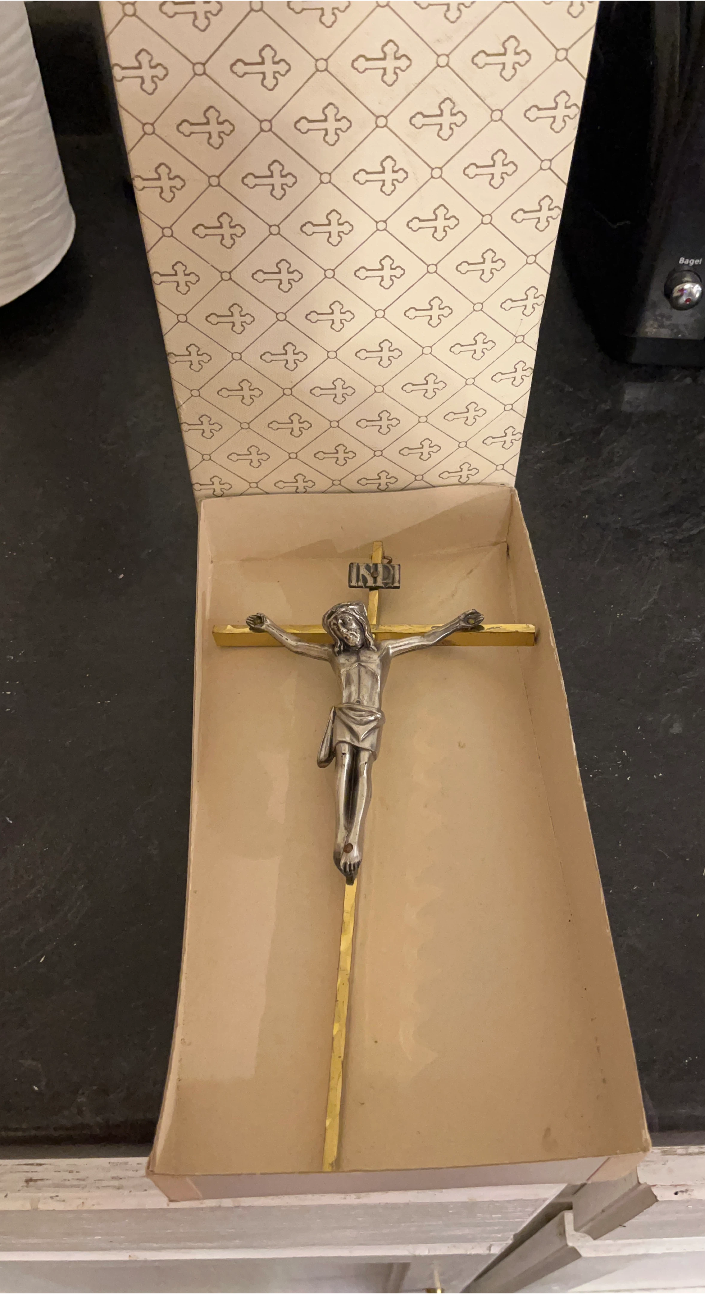 Selling a crucifix that comes with its original box. It's in good condition and ready to find a new home!