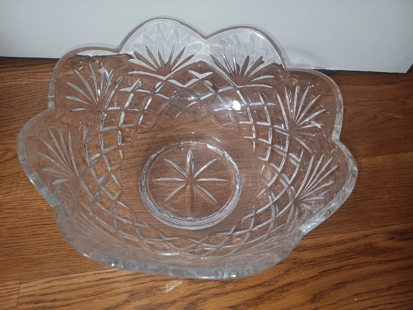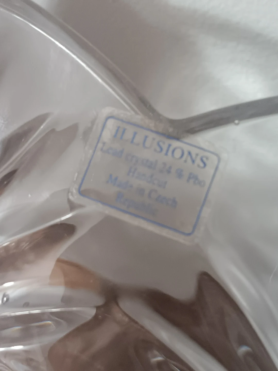 761Selling a beautiful Illusions lead crystal bowl. It's handcut and made in the Czech Republic. The bowl features a lovely starburst design and would make a great addition to any home!