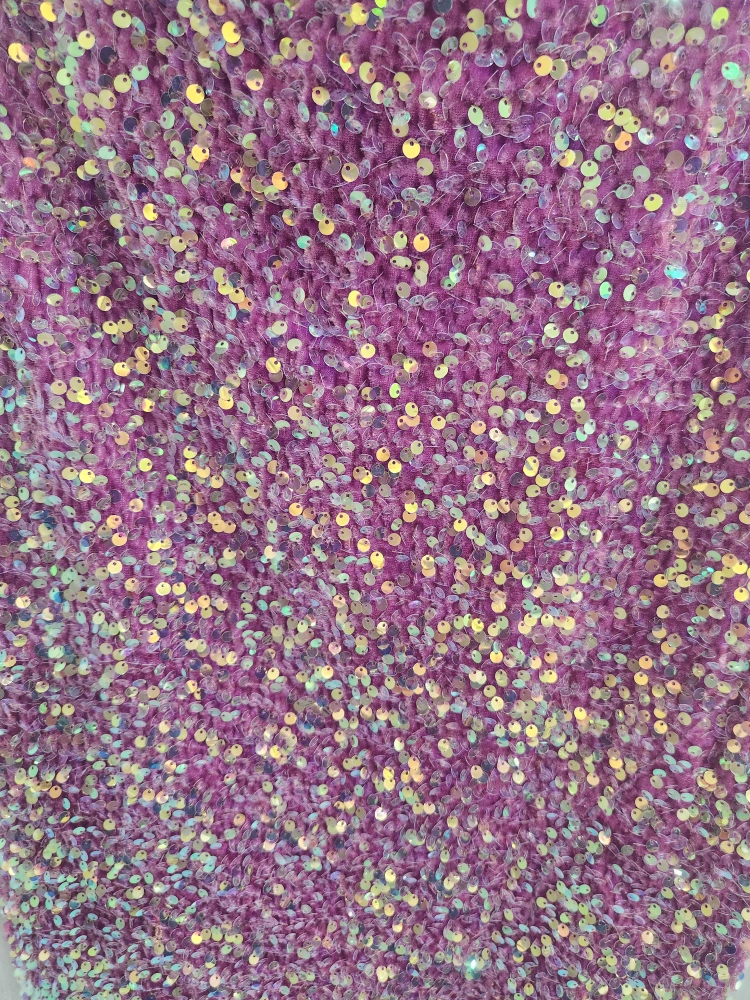 60Worn one and cleaned. Didn't see any loose sequins. Purchased from Von Maur and fit more like a large. Dress from shoulder to bottom is about 34". Fits like a size 10.
