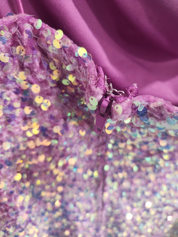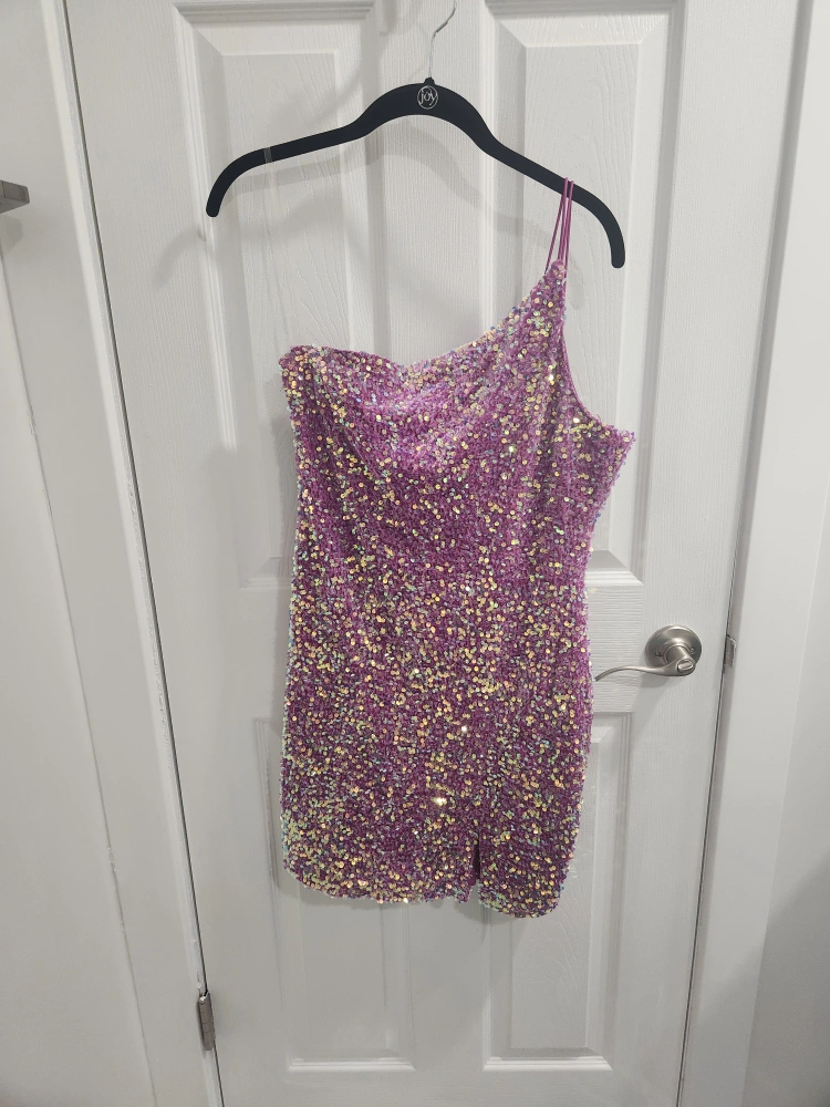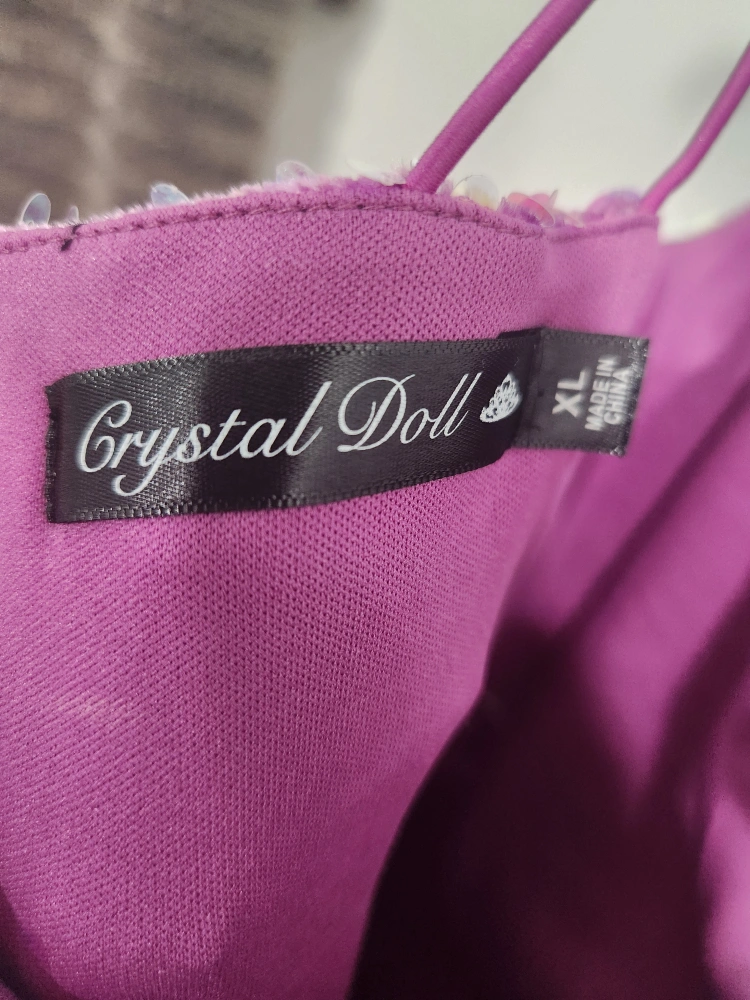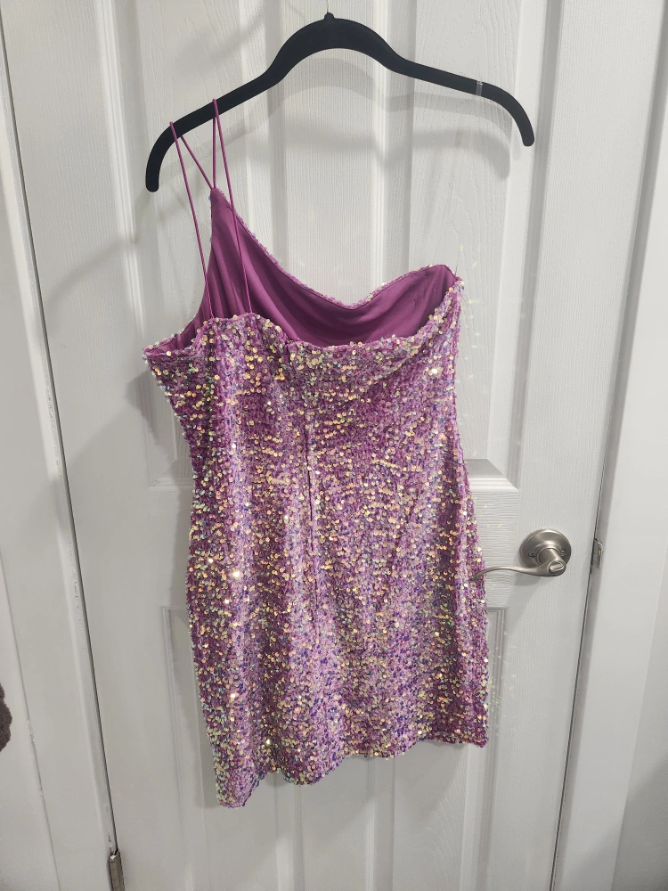Crystal Doll Purple Sequin One Shoulder Dress - XL